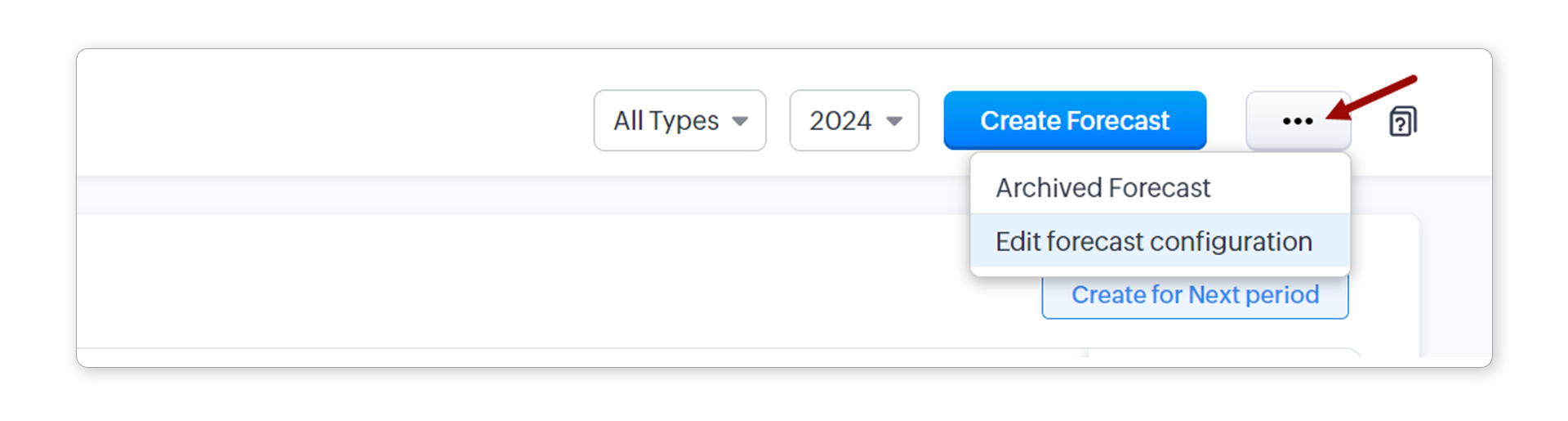 If you have already created Forecast Configuration, click the More button (...) and select Edit forecast configuration to make changes.