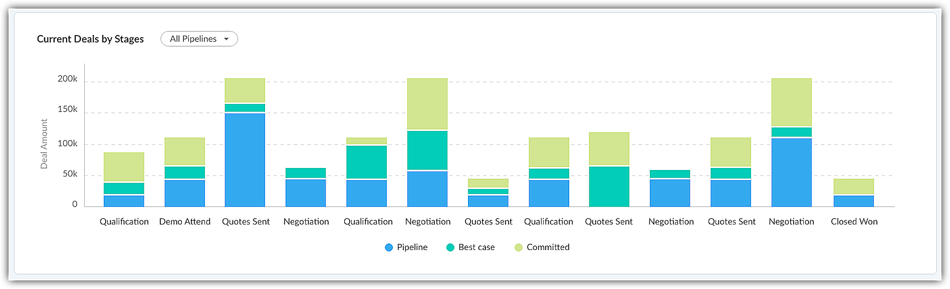 - Pipeline - The deals are open and still in the sales cycle.