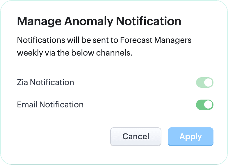 The purpose of configuring forecasts is to keep track of the company's performance at various levels of the organization. Thus, it is essential to have records of forecasts to get better understand your performance over time. In Zoho CRM, forecasts are automatically archived, and you can go through them as and when required in the future.