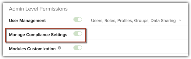 To switch on GDPR compliance, go to Setup > Security control > Compliance Settings .