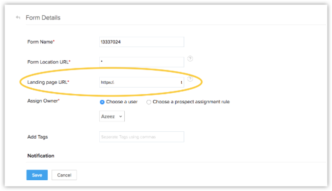 - Under Form Details, enter the desired URL to which you want to direct your lead on submitting the form.
