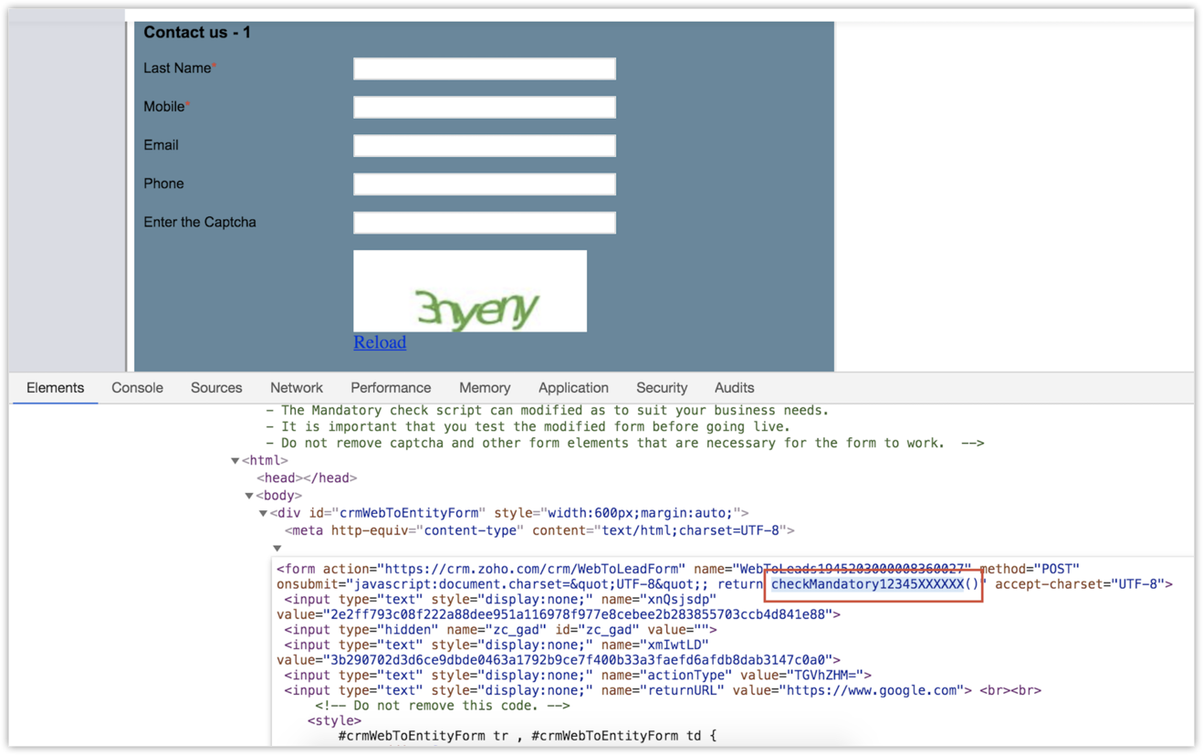 support@zohocorp.com and make sure to include the webform URL where the code is embedded in the email.