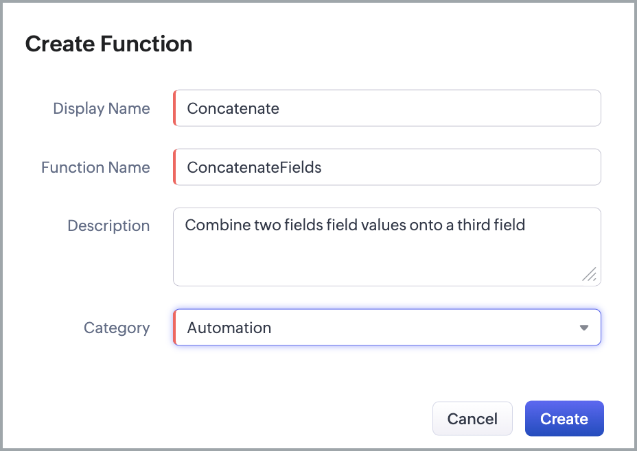 There are times when it is necessary to combine two separate field values into a single field. In such instances, we can concatenate two separate fields from the same module with the use of a custom function. For example, in one of the modules, we might want to concatenate First and Last names and display them as a single field called Name. This is just an example; you may apply the same custom function to any two fields you like.