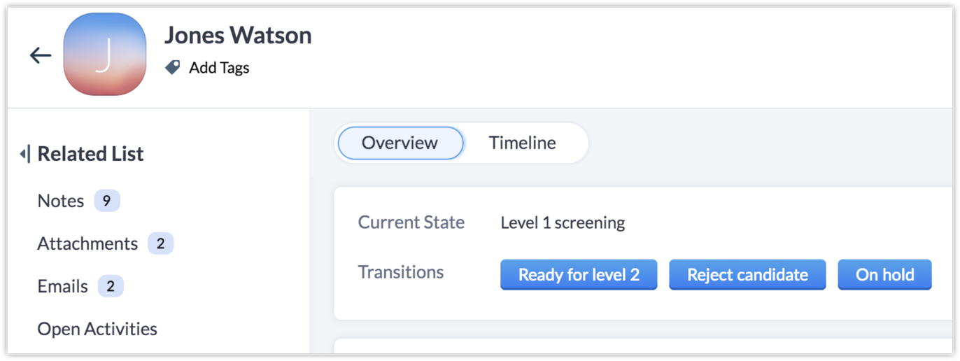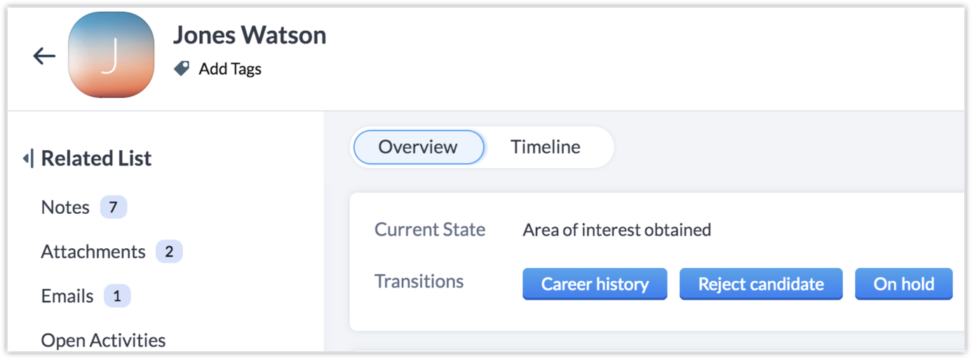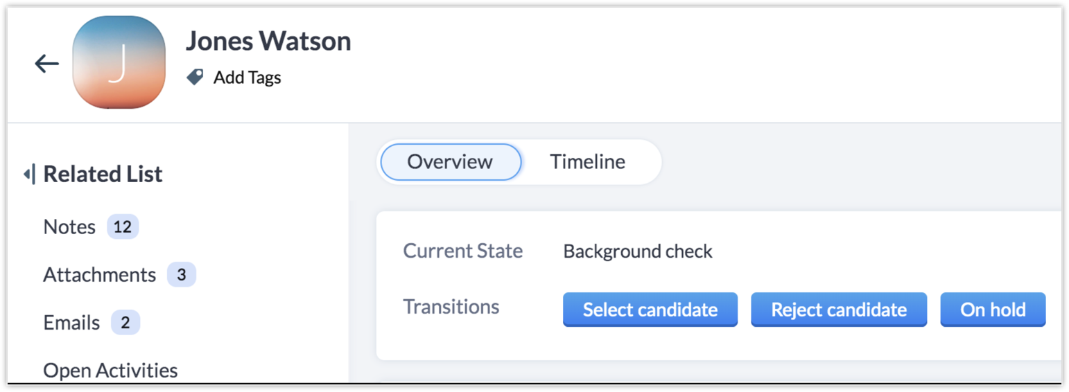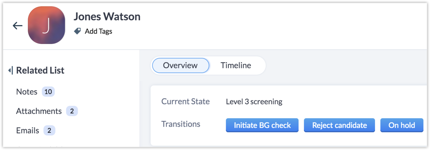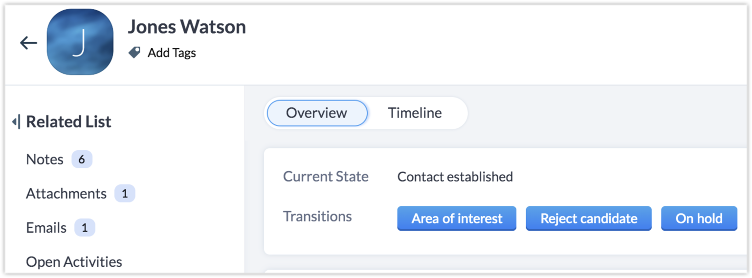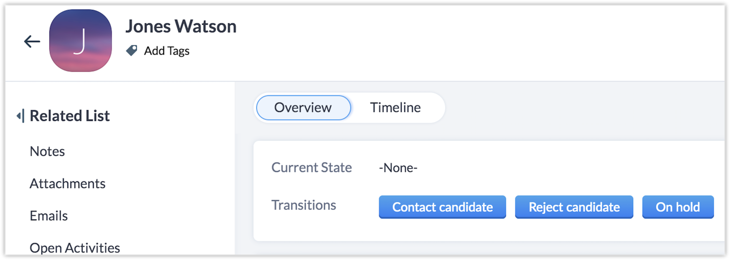 Contact Candidate — To be accessible from On Hold and None States.