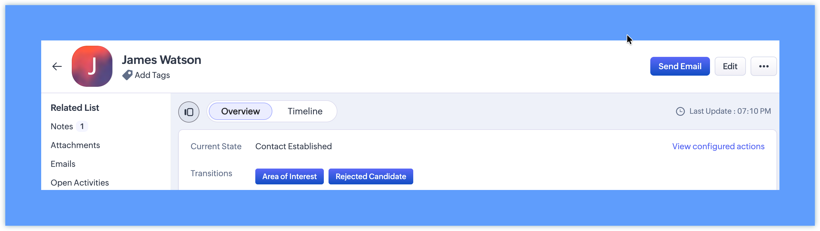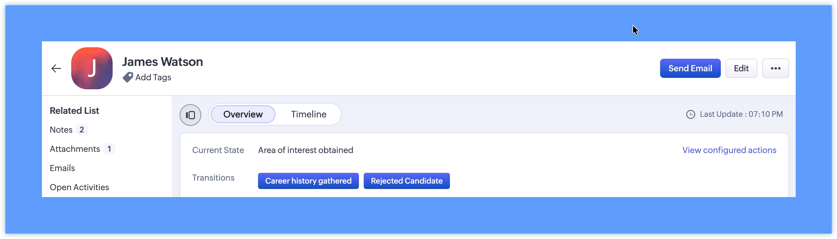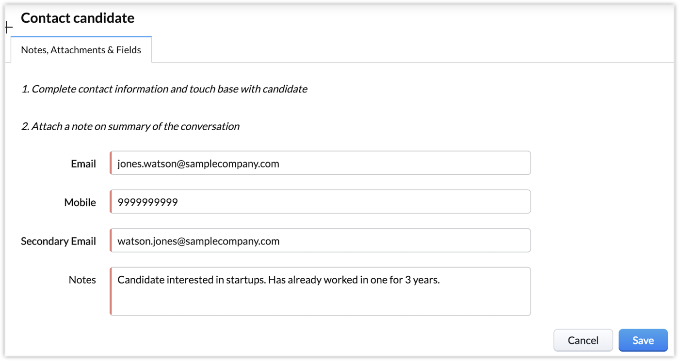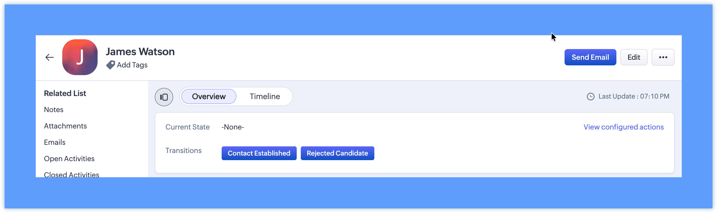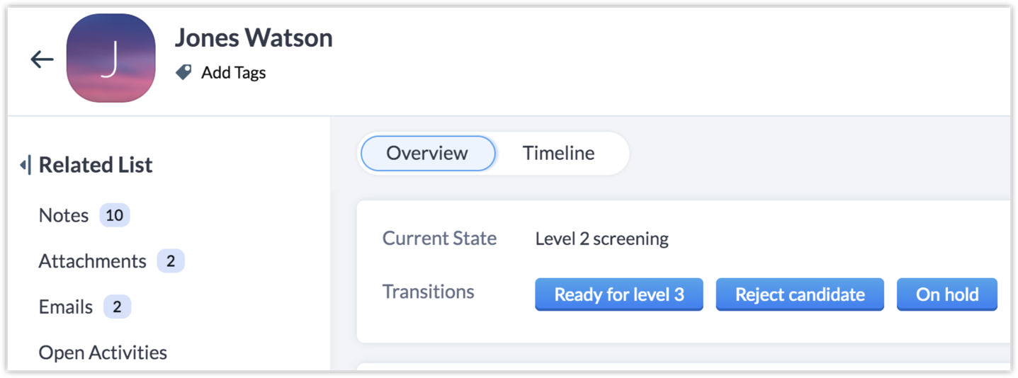Contact Candidate — To be accessible from On Hold and None States.