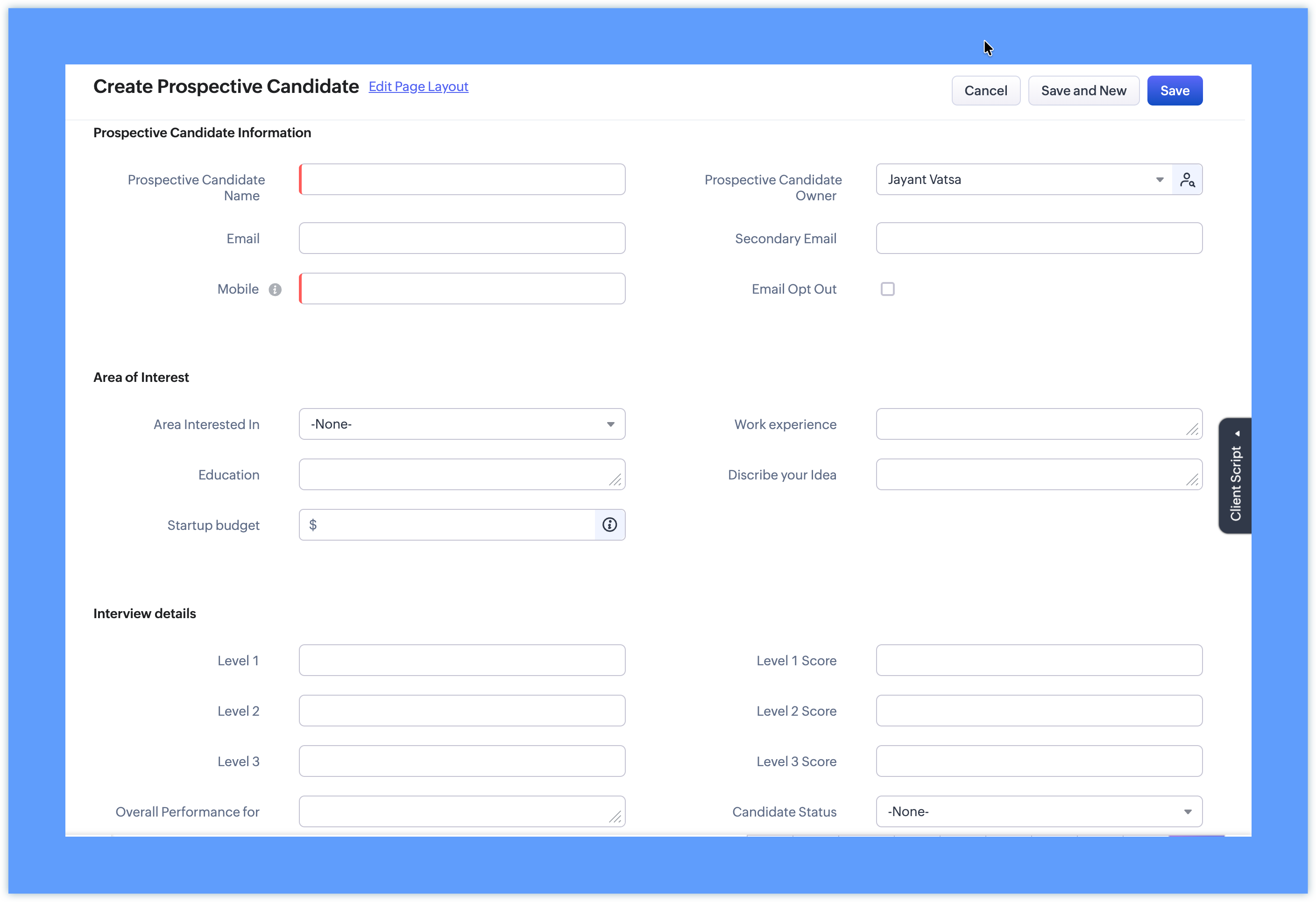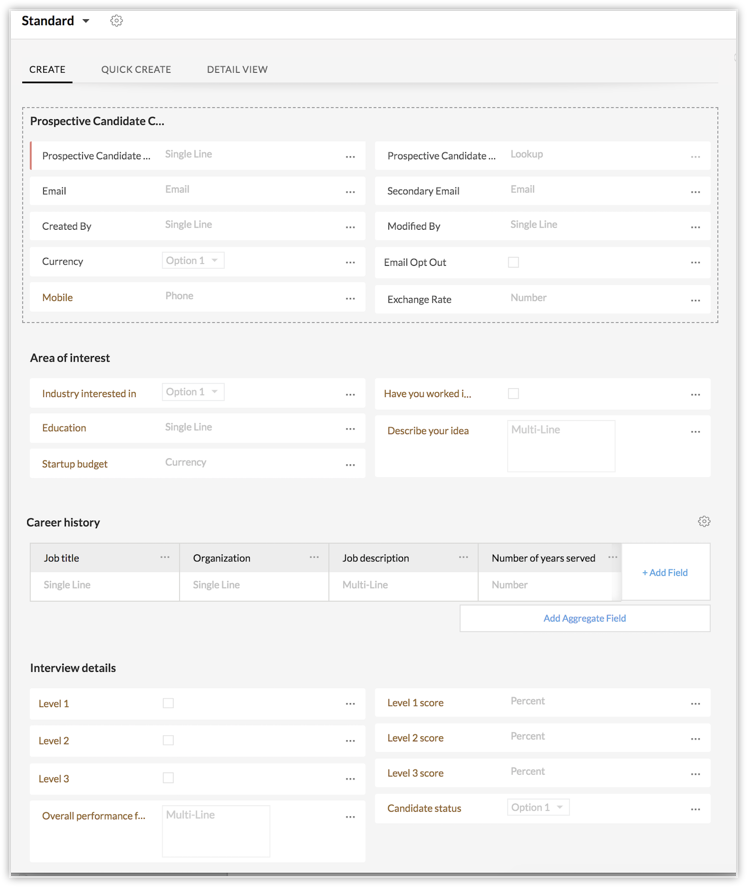 Select the Prospective Candidates module and the Standard layout.