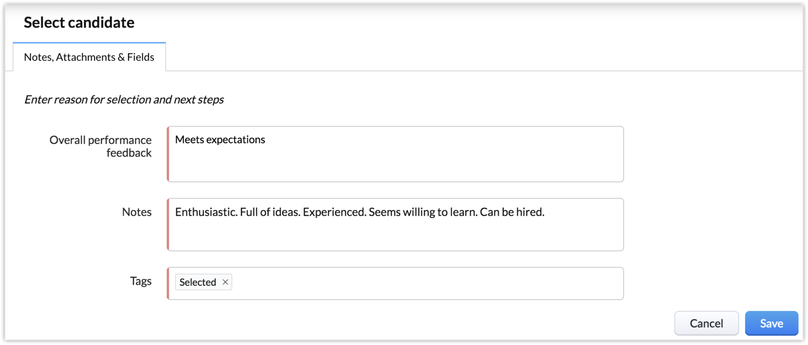 Insert Message Add Fields Overall performance feedback Select Make Notes as Mandatory Select Make Attachments as Mandatory |