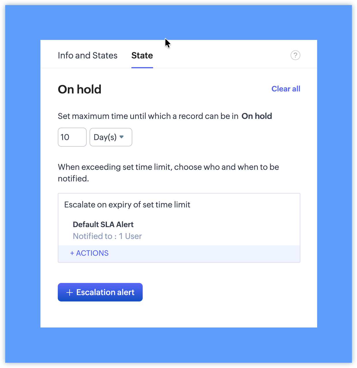 Create an SLA on the state: On Hold.