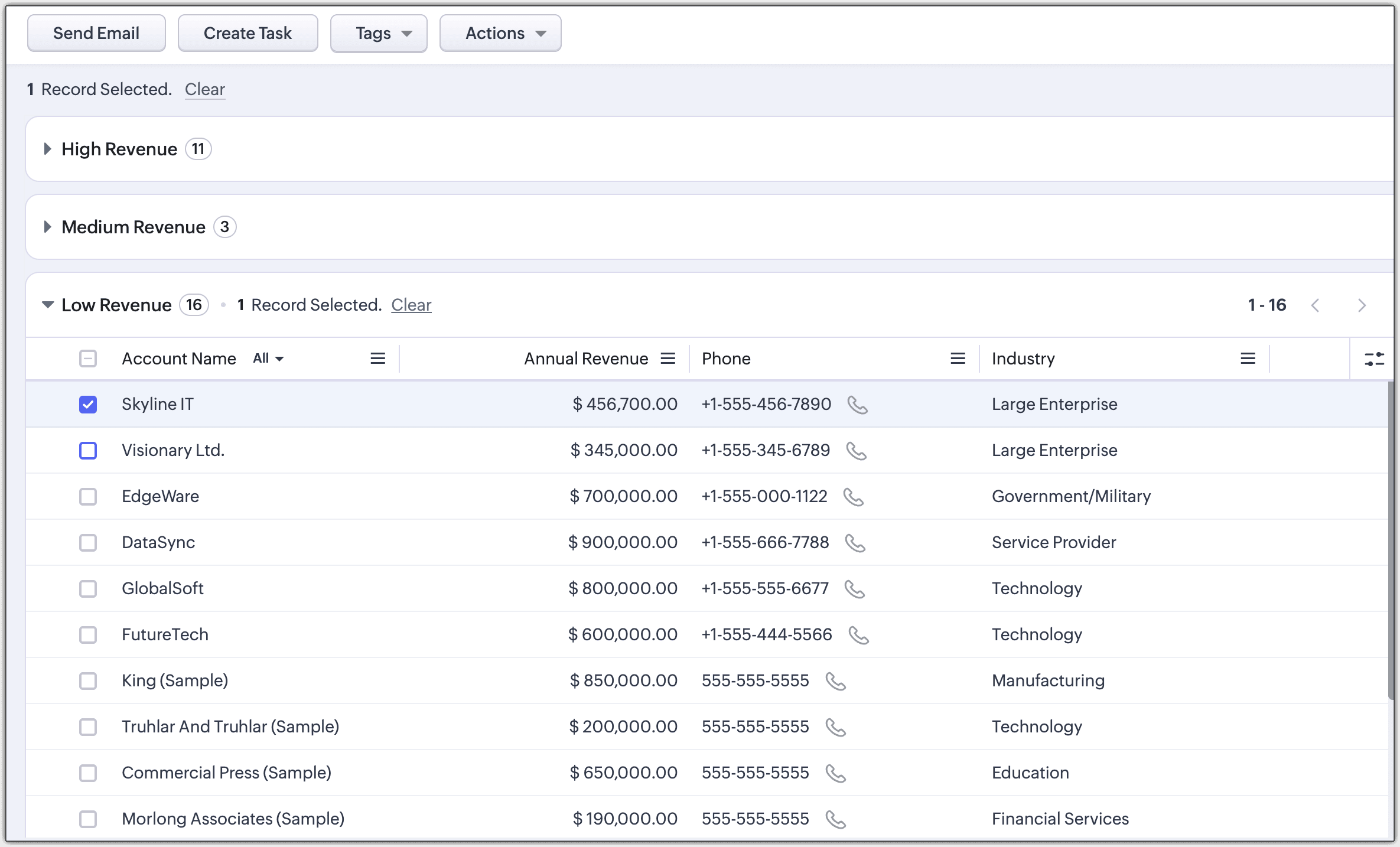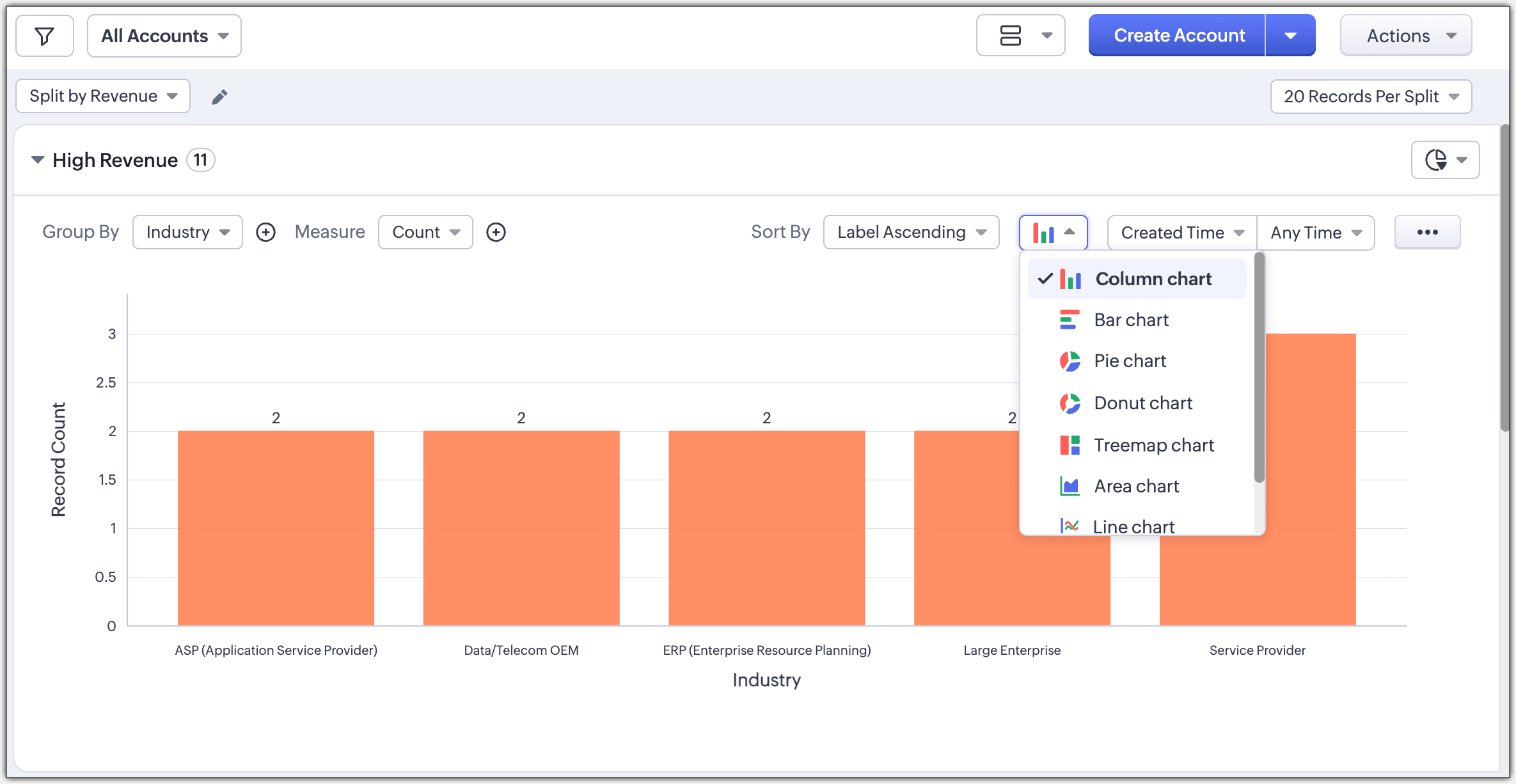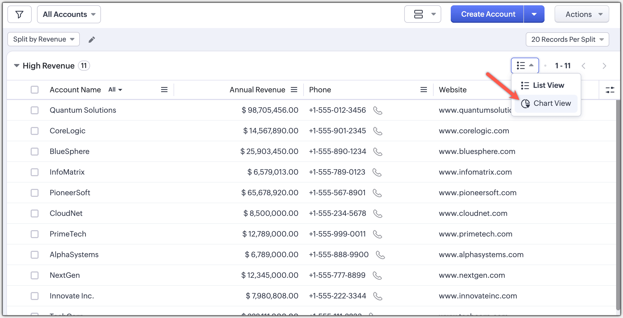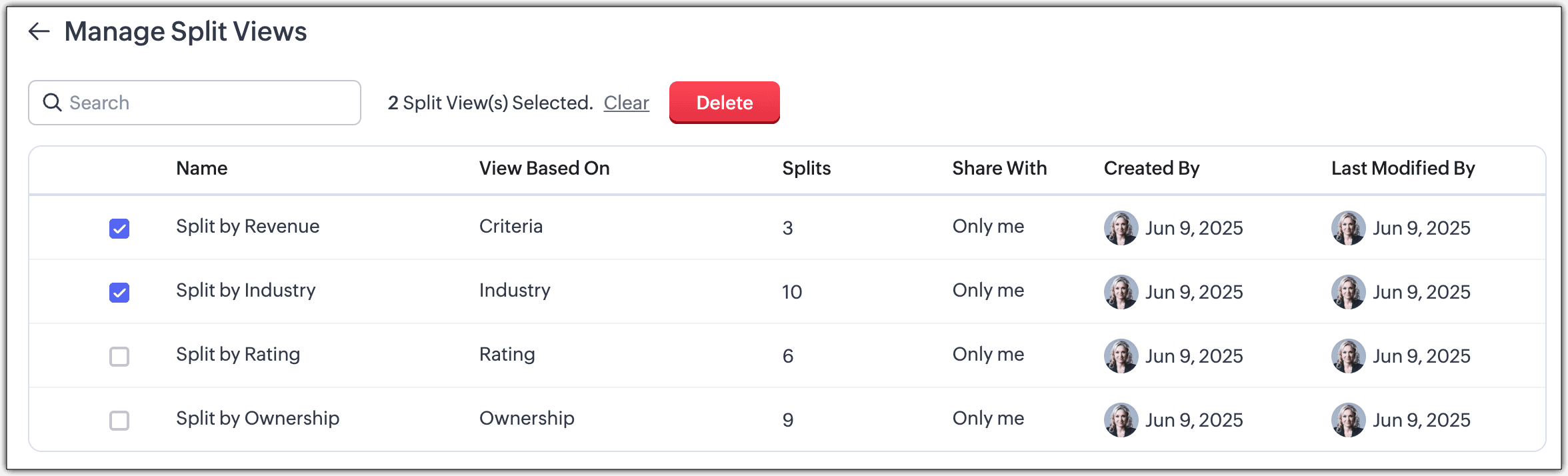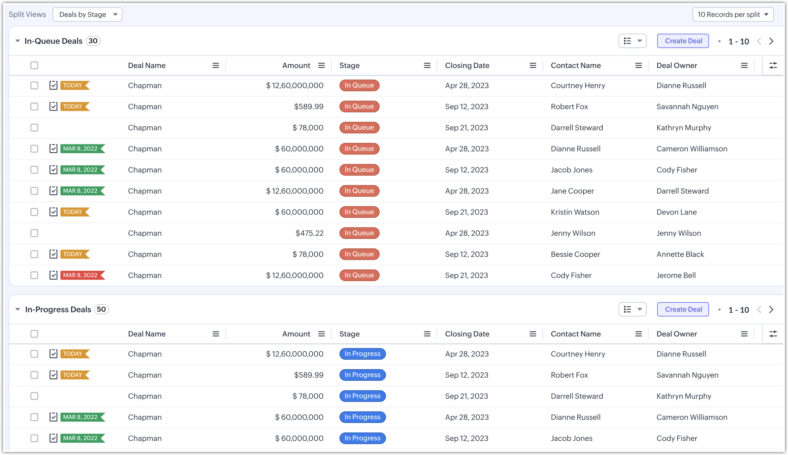 Example: If you're a sales manager handling numerous deals, you can use Split View to categorize them into Small, Medium, and Large based on revenue value, each displayed in its own panel for easy analysis and quick actions.
