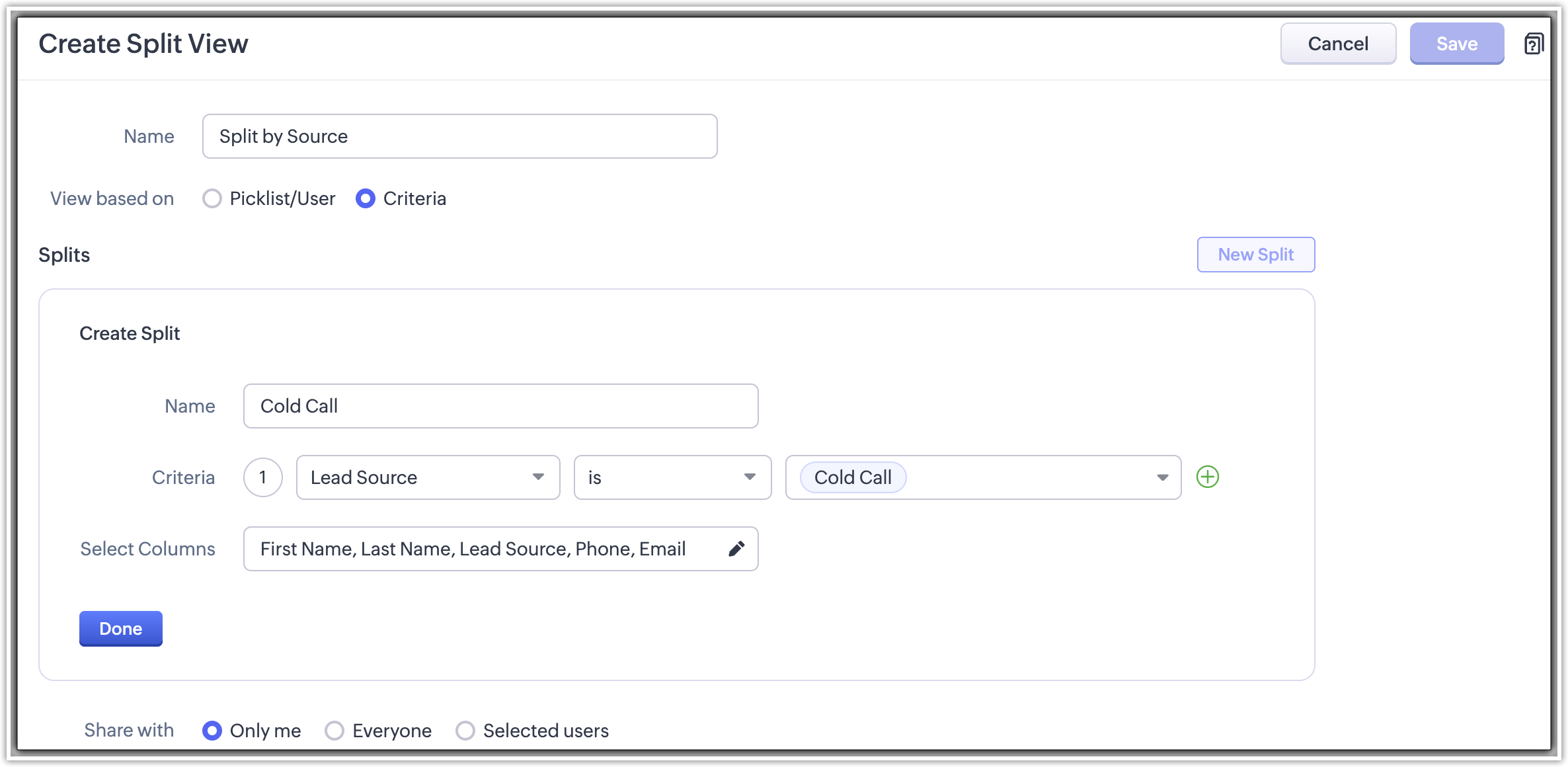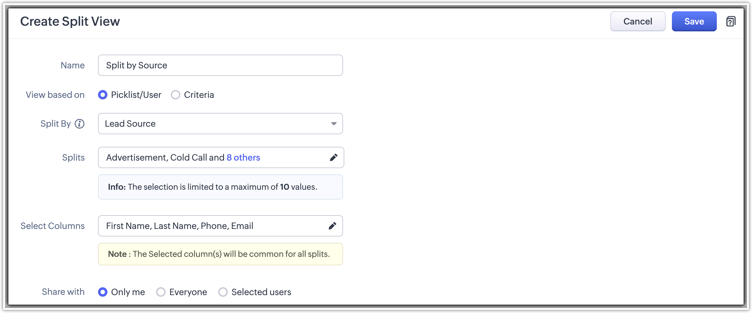 The number of Split Views you can create depends on your Zoho CRM edition, as shown in the chart below: