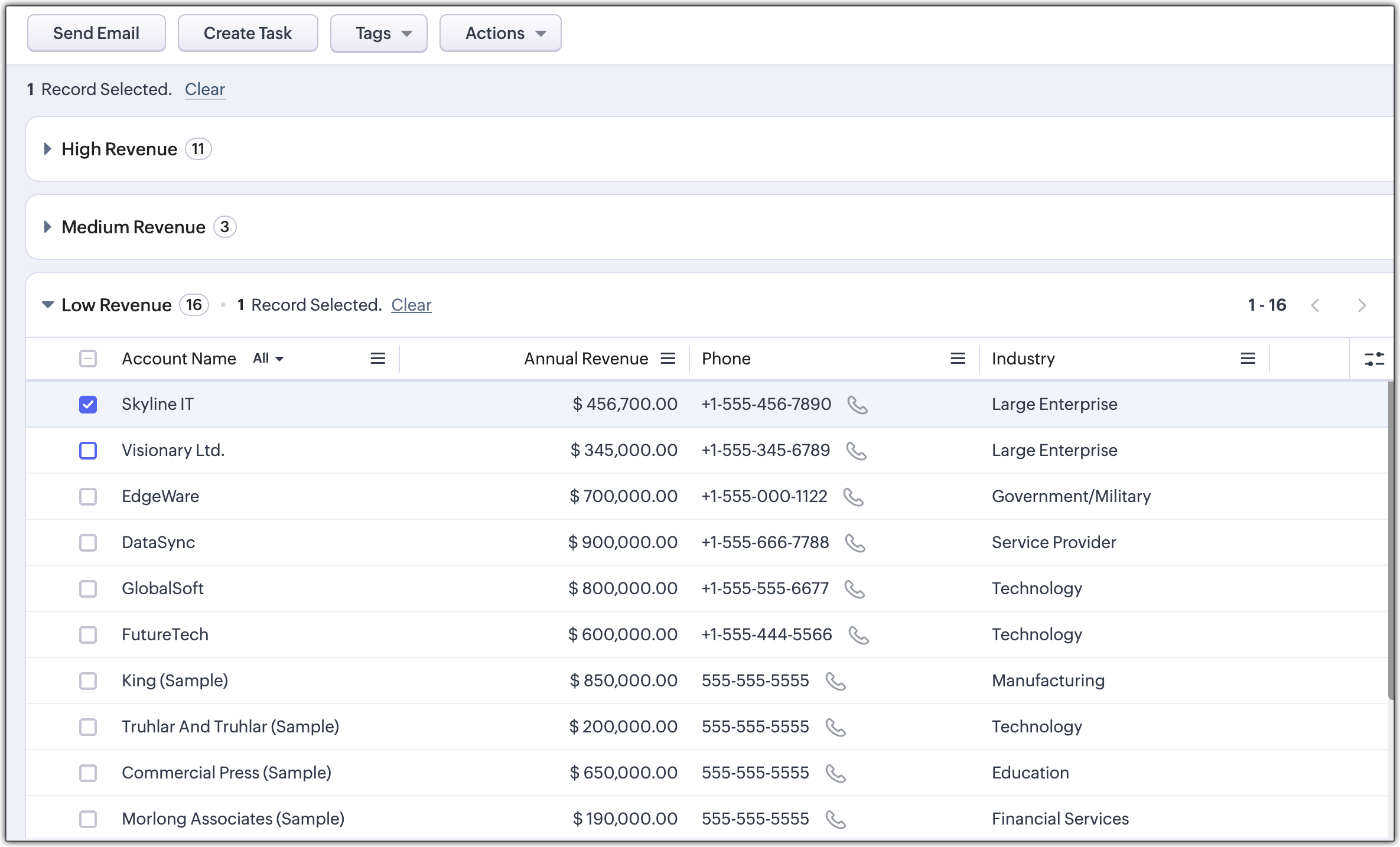 - Organize your records by dividing them into multiple tables, based on a chosen field (e.g., Lead Source, Record Owner, or Industry).