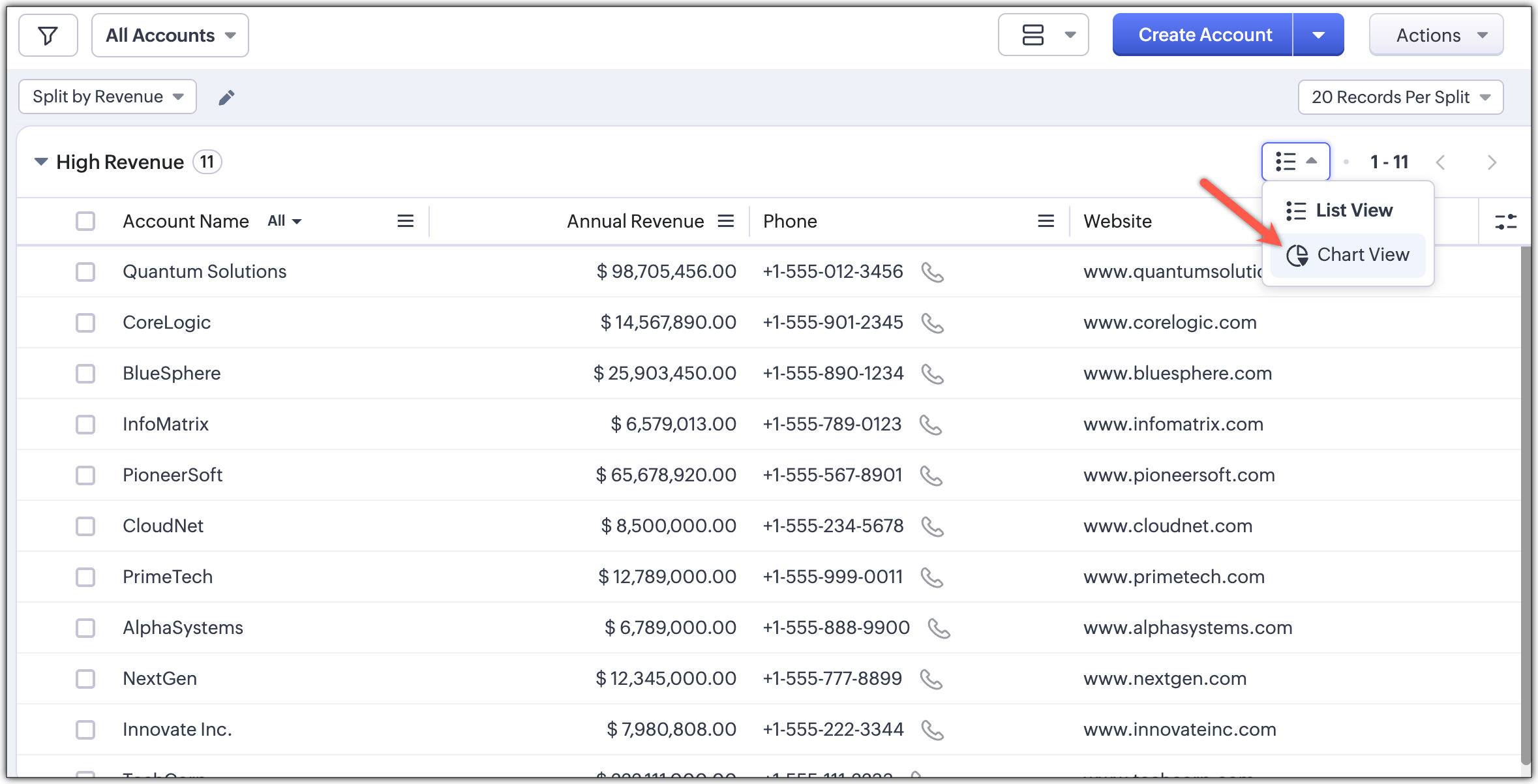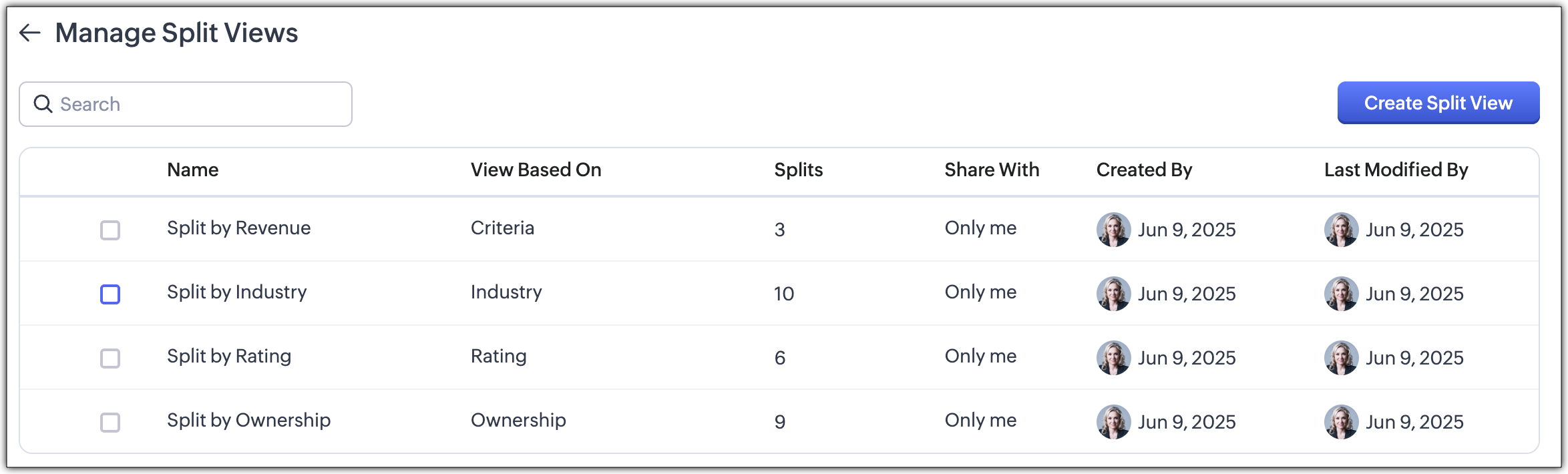 You can switch between standard list view and Split View at any time. You can manage your split view anytime to make edits or customize the view based on new records being added or more.