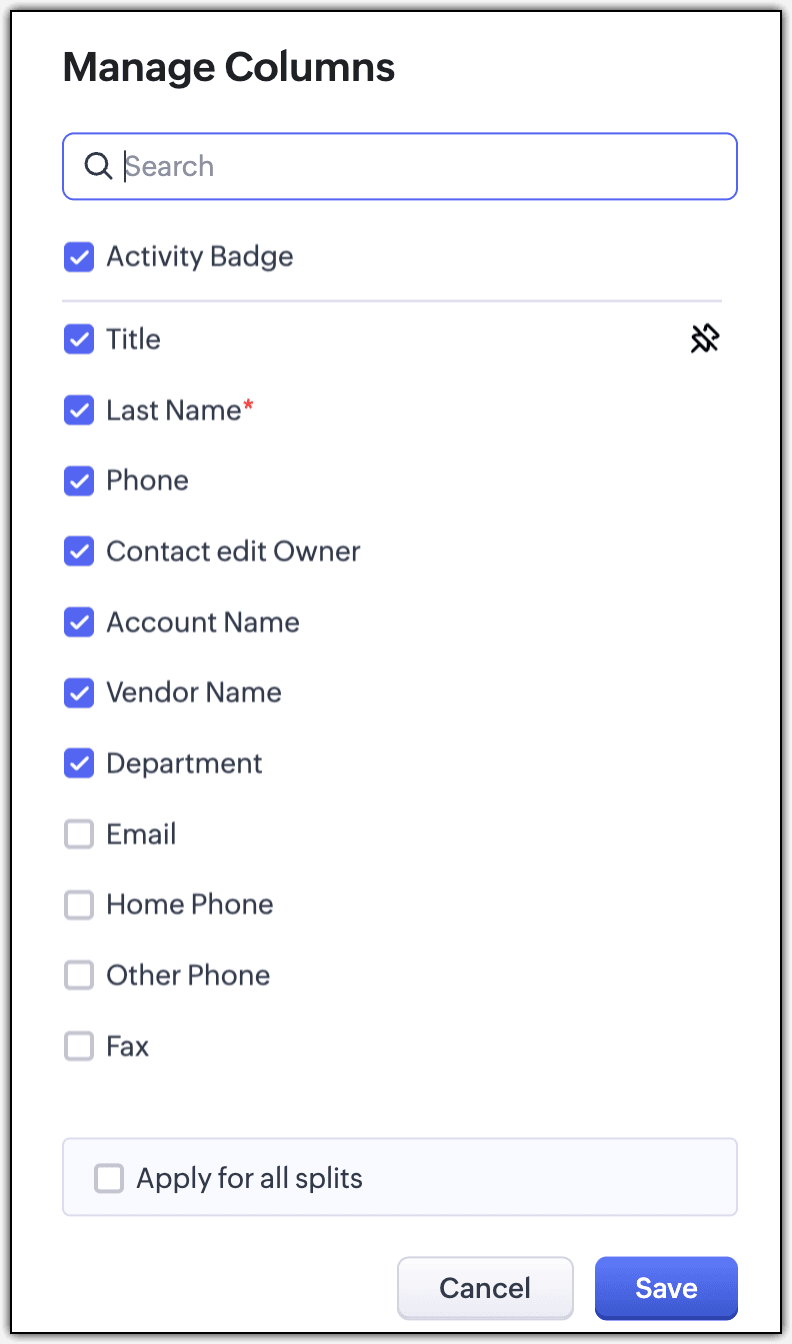 With split view, you can choose to display the same data or columns across all splits, or you can have each split display different data to arrive at more informed insights. Simply click the "Manage Columns" option at the end of each split and select the columns you want to see. If you want all your splits to display the same information, click "Apply for all splits". Alternatively, you can skip this step if you prefer to have different data displayed in each split.