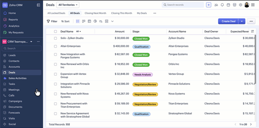 Renewals : A team module that comprises active customer accounts with their upcoming renewal dates.