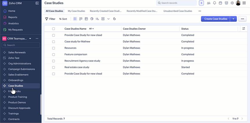 For instance, we can automatically create an onboarding record in the onboarding team module when the deal stage is marked as closed won or create a win/loss analysis record in the marketing team module when the deal stage is marked as closed lost. This will help maintain continuity between the two steps and also provide the teams working on these records at both steps with clear customer context.