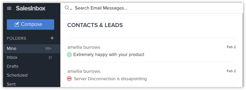 - In SalesInbox, you can view the email sentiment for the incoming emails in the inbox.
