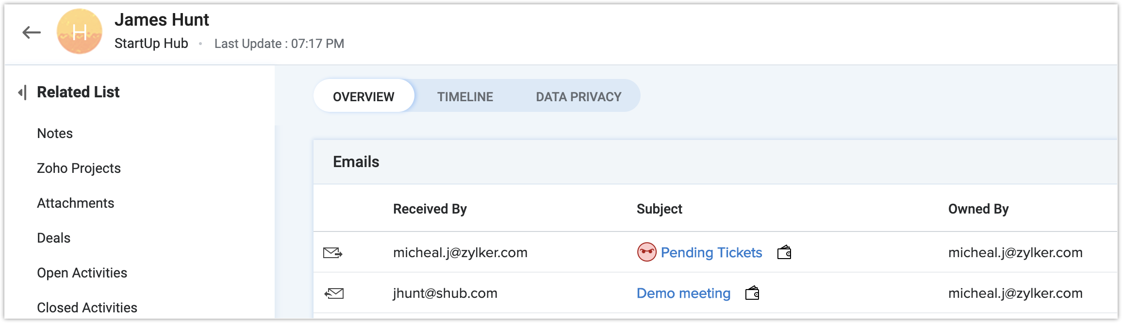 - Inside Zoho CRM, you can view the email sentiment for a record under the Emails related list.