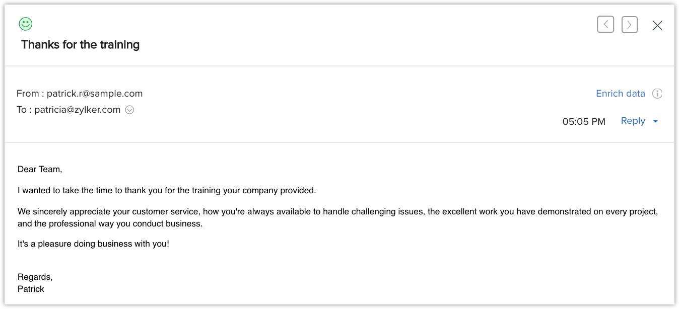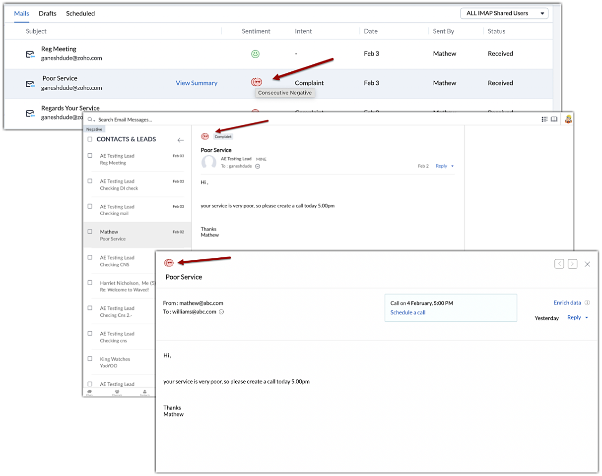 Zoho CRM gives you an option to filter the records based on the sentiment of an Email. The following are the two examples to explain the same.