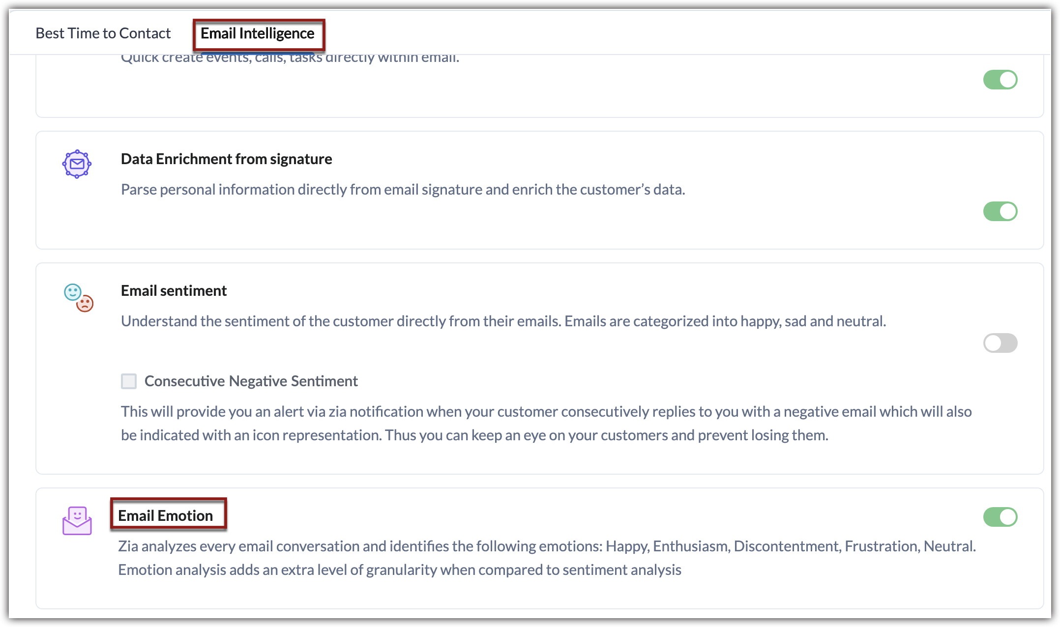 - Organizations with the new email integration will alone have email emotions enabled. Click here to know more about this integration.