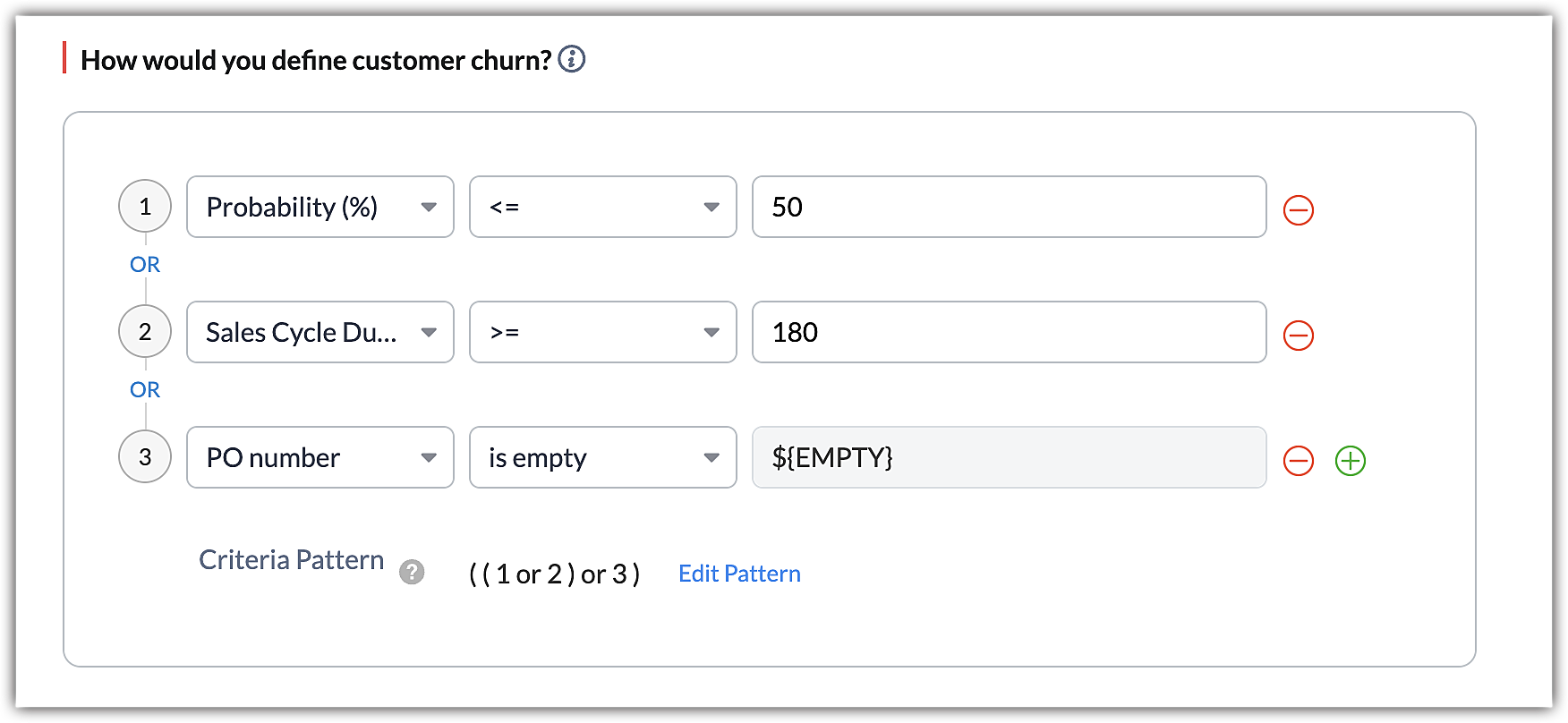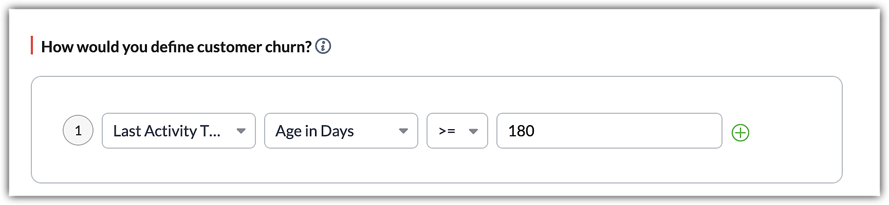 - In the How would you define customer churn? field, select the criteria that define churn.
