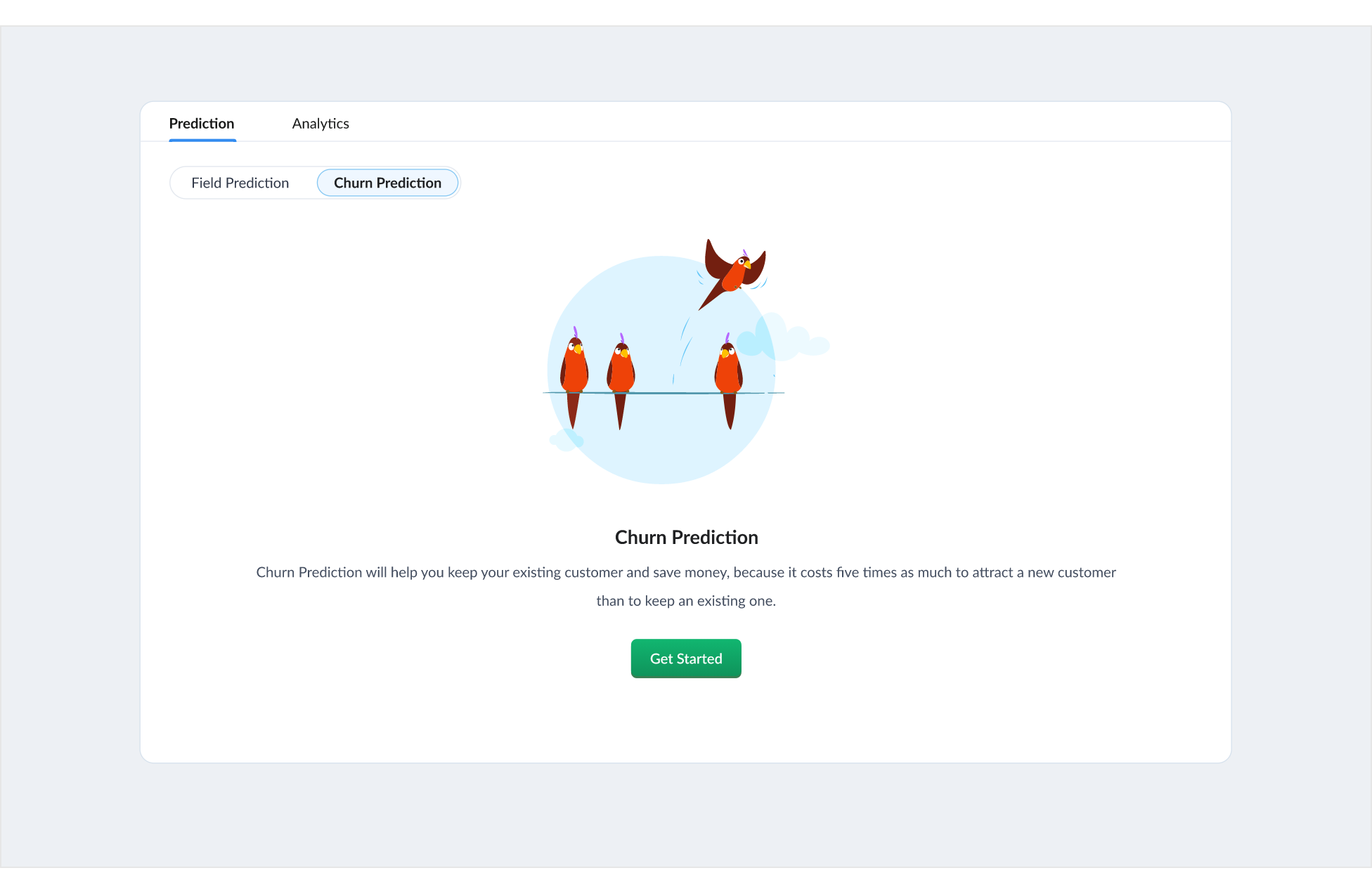 - If you're creating the churn configuration for the first time, click Get Started.