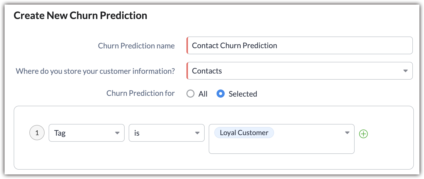 - Select Selected if you want to predict churn only for specific records, and then provide the criteria.