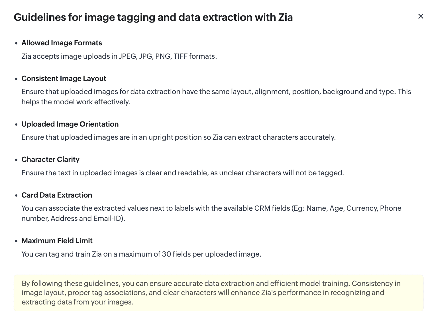 If your image comply with these pre-requisites and ICR guidelines (mentioned above), then Zia will be able to give you a perfect match.Creating records