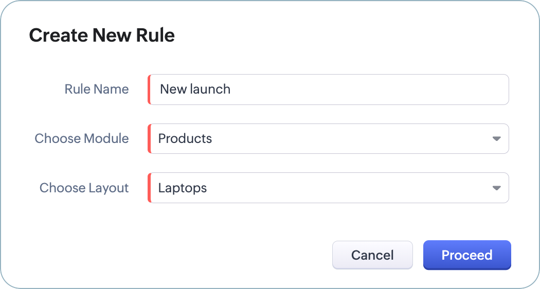- Go to the desired module and click on the drop-down available next to Create record. Remember, you should have configured the ICR rule to enable this option.