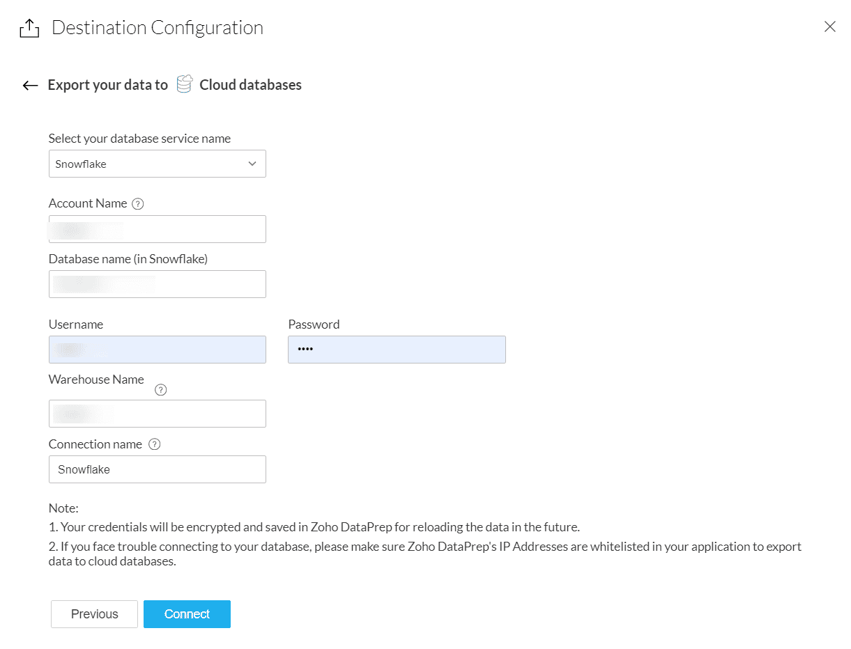 Note: If you have already added a cloud database connection, you can simply select the existing connection under the Saved connections section and proceed with exporting.