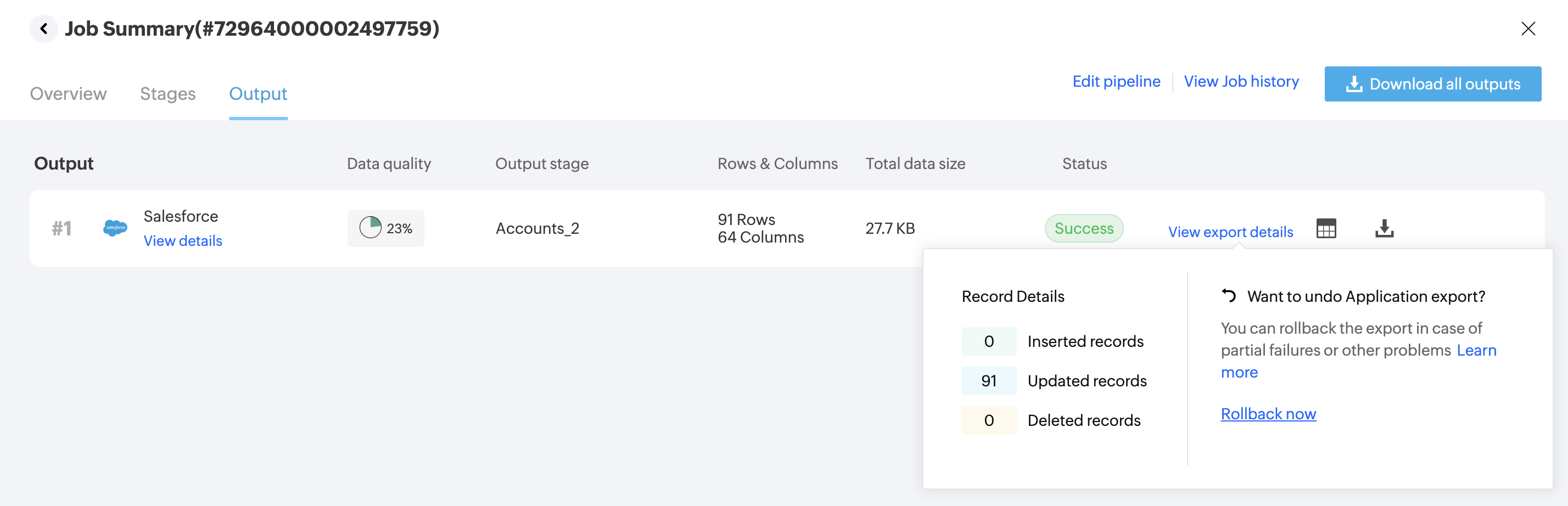 4. In case of partial export failures, you may choose to undo or cancel the changes made to Salesforce using the Rollback now feature. You can roll back even a successful export if you want to. Learn more about rollback in the next section.