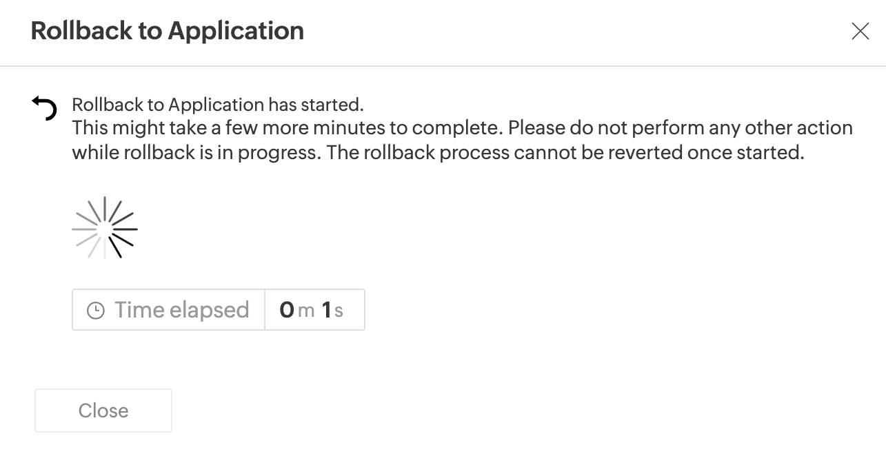 3. The rollback progress is shown. Please do not perform any other action while the rollback is in progress. The rollback process cannot be reverted once started.