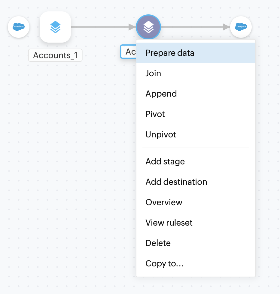 DataPrep Studio page of the stage where Salesforce is set as the destination.