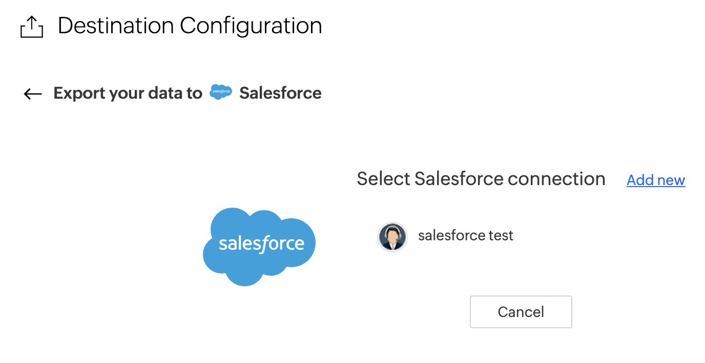 Note: Click the Add new link to add a new Salesforce account. If you want to add more than one connection, make sure you log out of the existing Salesforce account in your browser and then try adding a new connection.