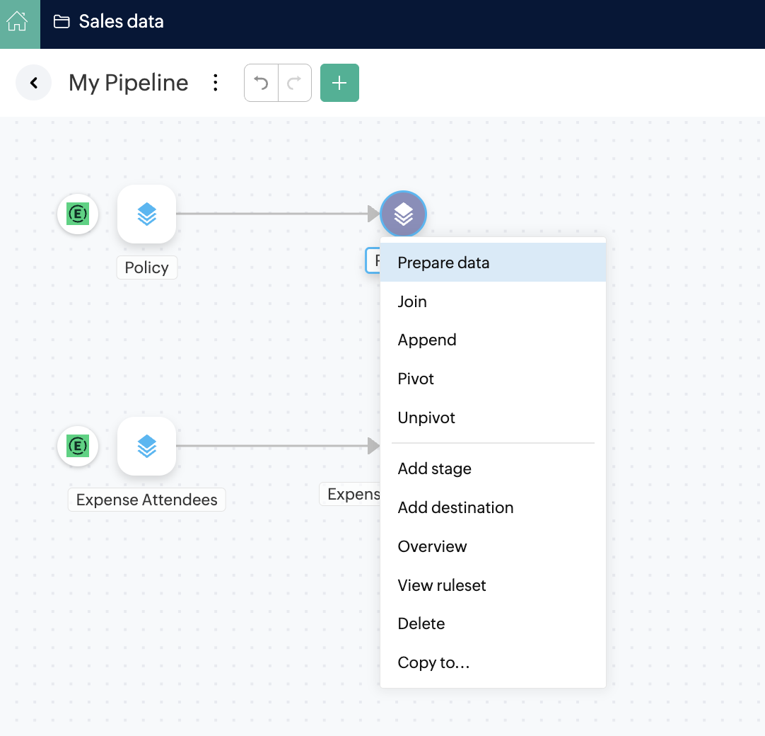 1. Open an existing pipeline or create a pipeline from the Home Page, Pipelines tab or Workspaces tab and click the Add data option.