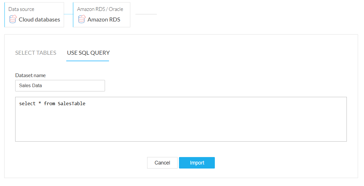 Zoho DataPrep supports importing data from Amazon RDS, a cloud database. Amazon RDS is also known as Amazon Relational Database Service and it helps to set up, operate, and scale databases.