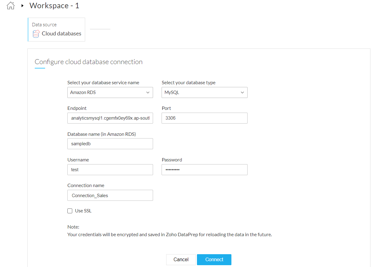 Ensure that you are using SQL authentication, as Zoho DataPrep only supports this authentication method.