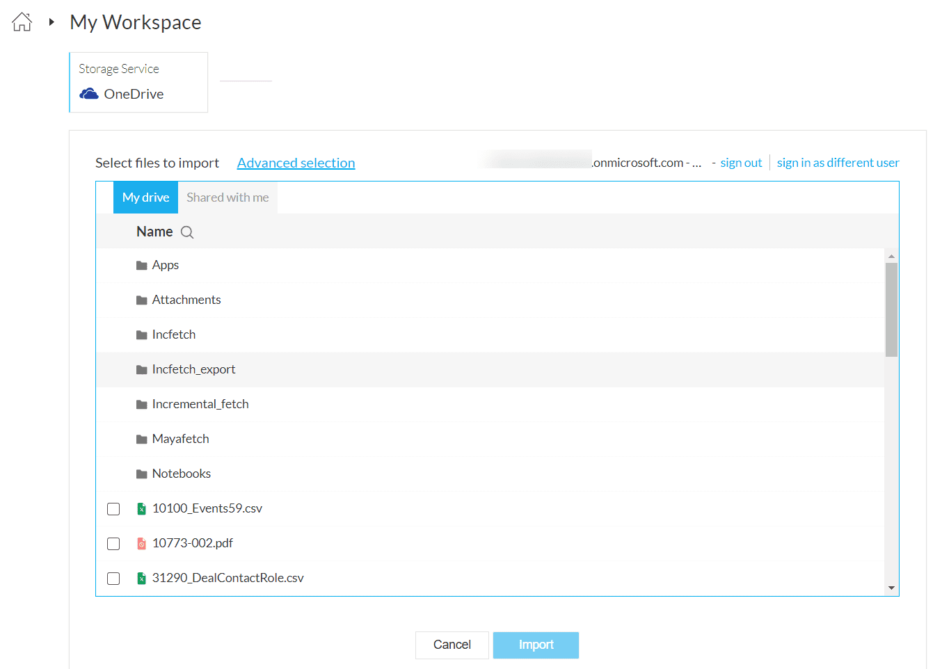 Incremental data fetch is a method used to import new files or modified files from a source. Zoho DataPrep helps you import incremental data from the following cloud storages using the advanced selection feature.