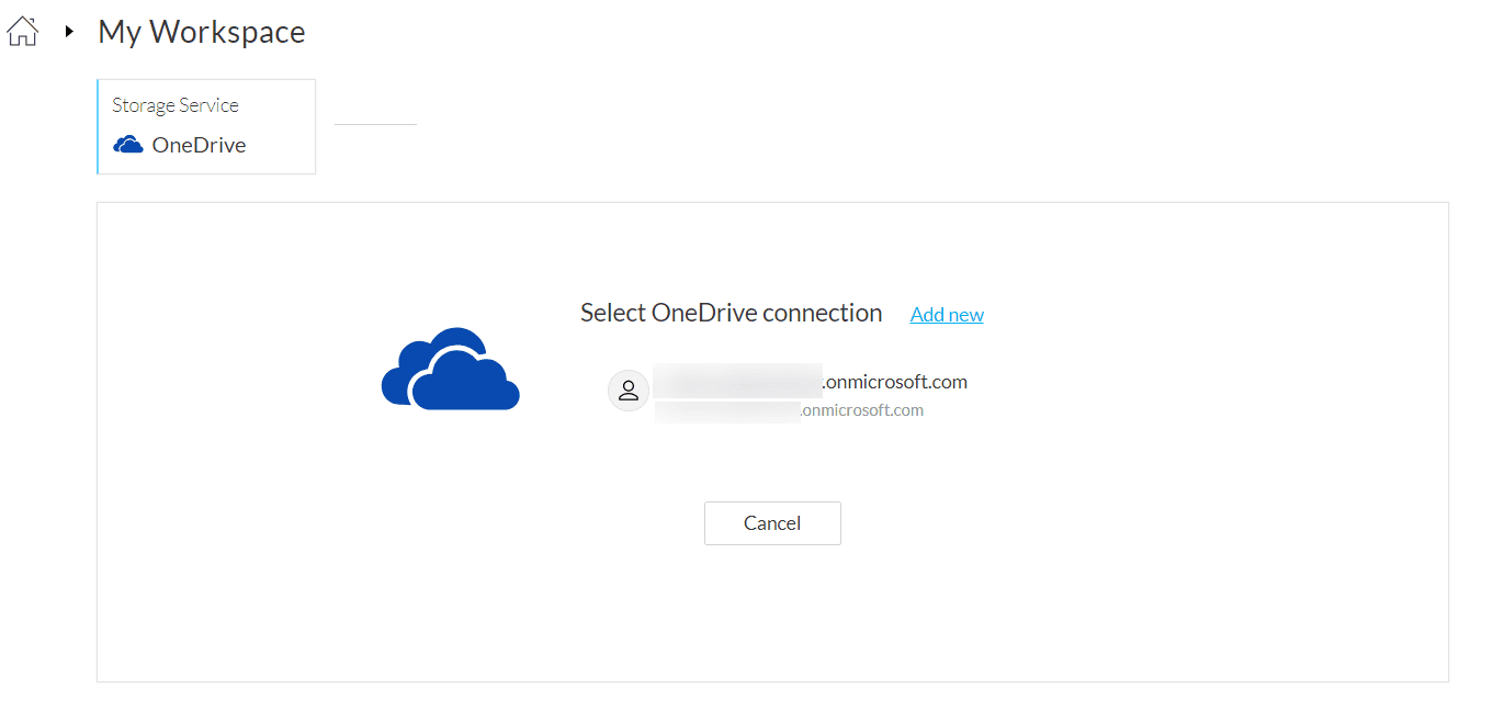 Note: Click the Add new link to add a new account. You can create as many connections as required.