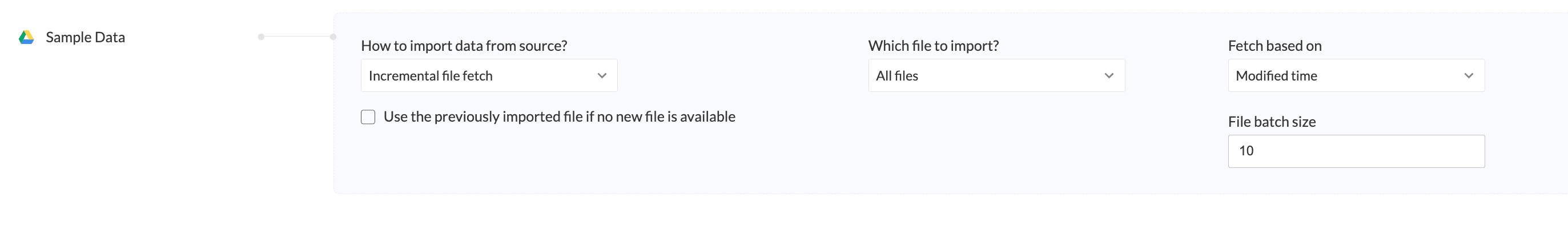 Fetch based on: You can choose to select the time based on which the file must be sorted and imported - Modified time, Created time.