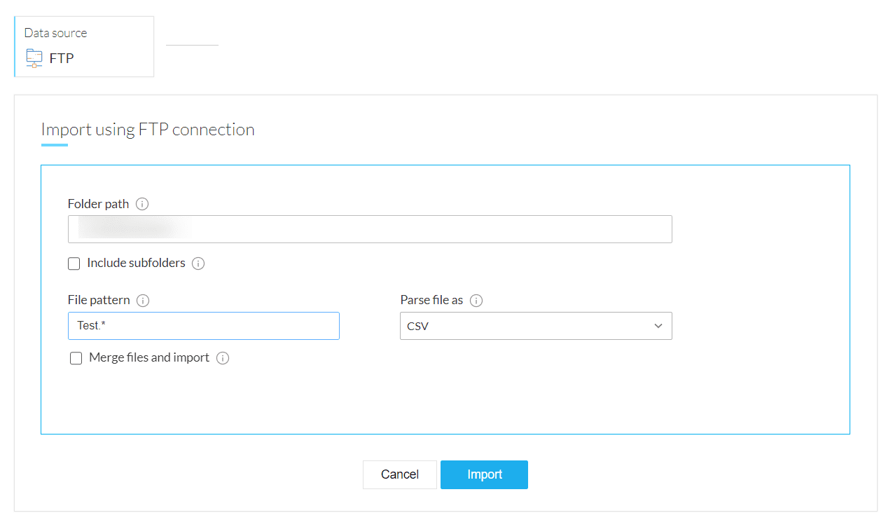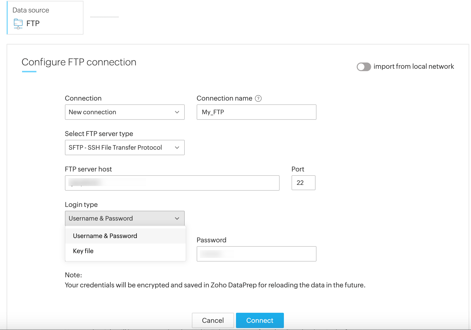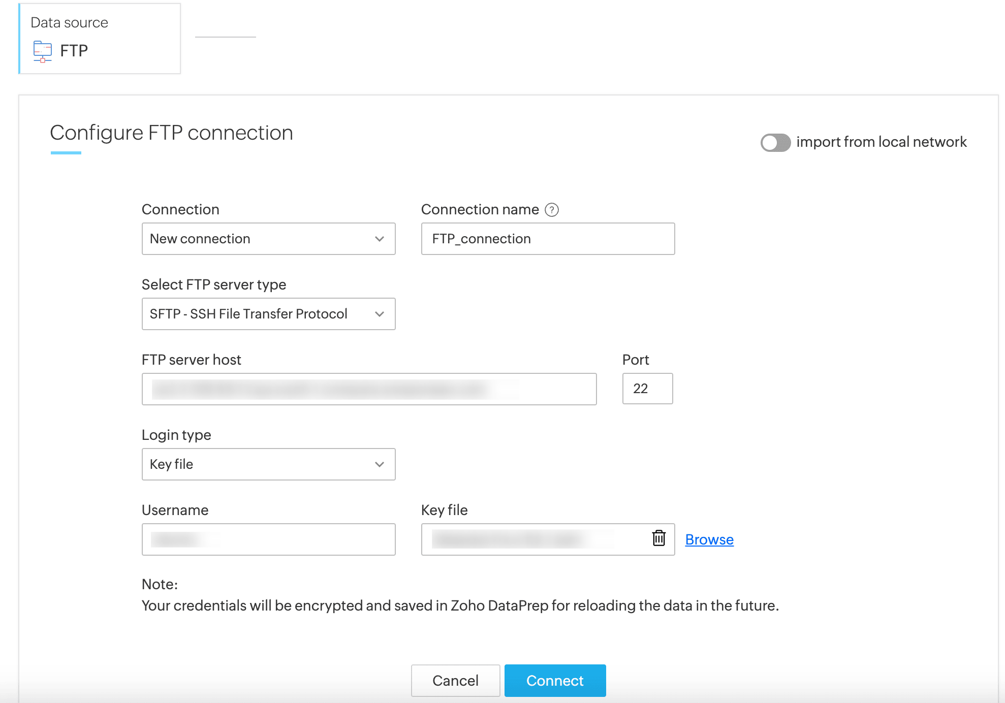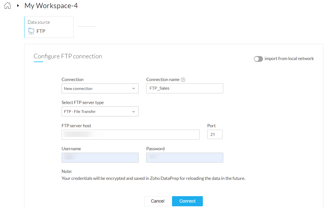 10. Click Import to upload data into Zoho DataPrep from the FTP server.