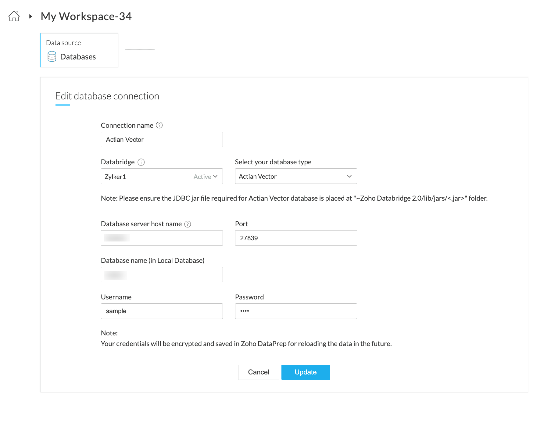 DataPrep saves your data connections to avoid the hassle of keying in the credentials every time you need to connect to a data source or destination. You can always edit the saved data connection and update them with new parameters or credentials using the Edit connection option.