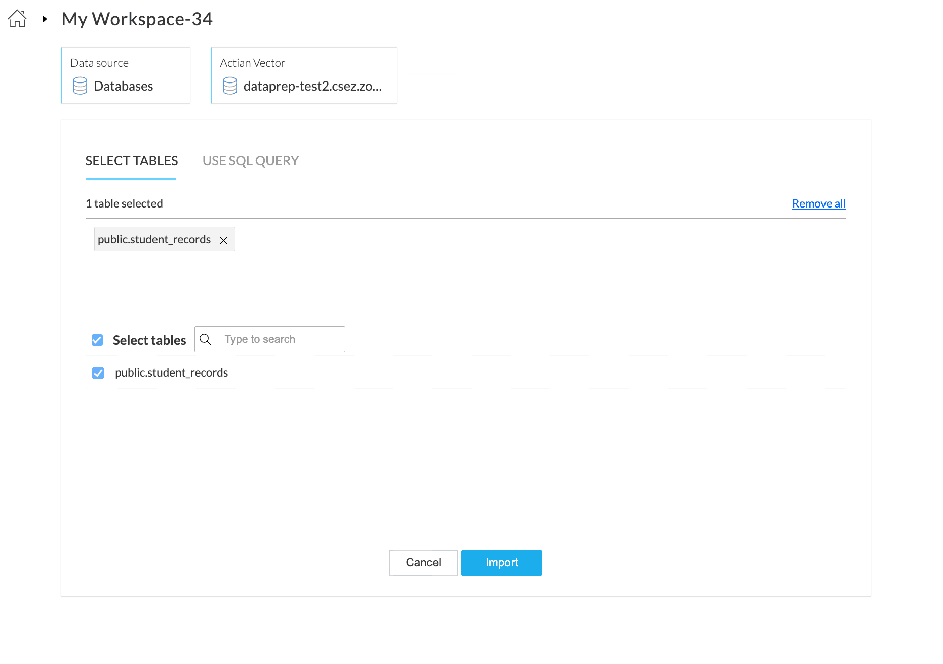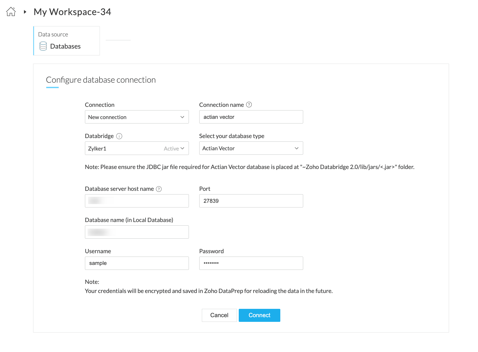 Note: The connection configuration will be automatically saved for importing from the database in the future. Credentials are securely encrypted and stored.