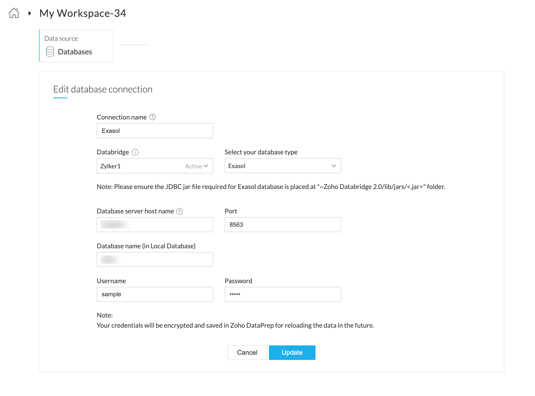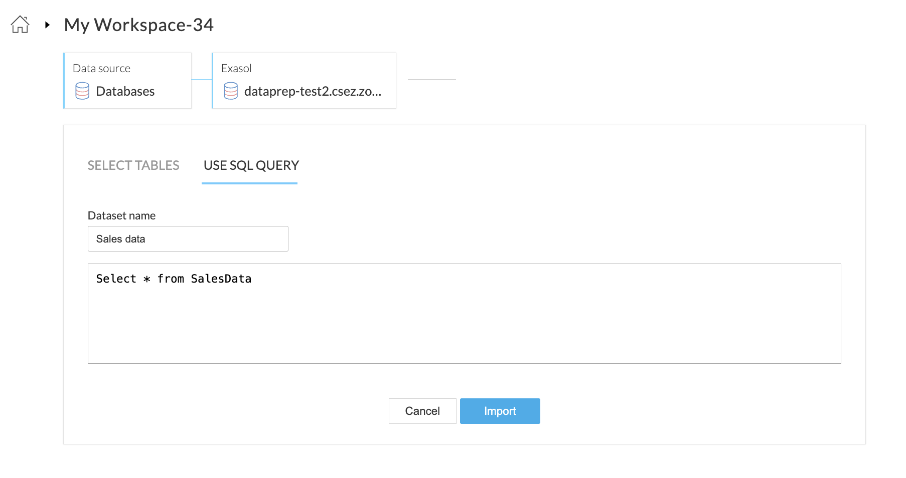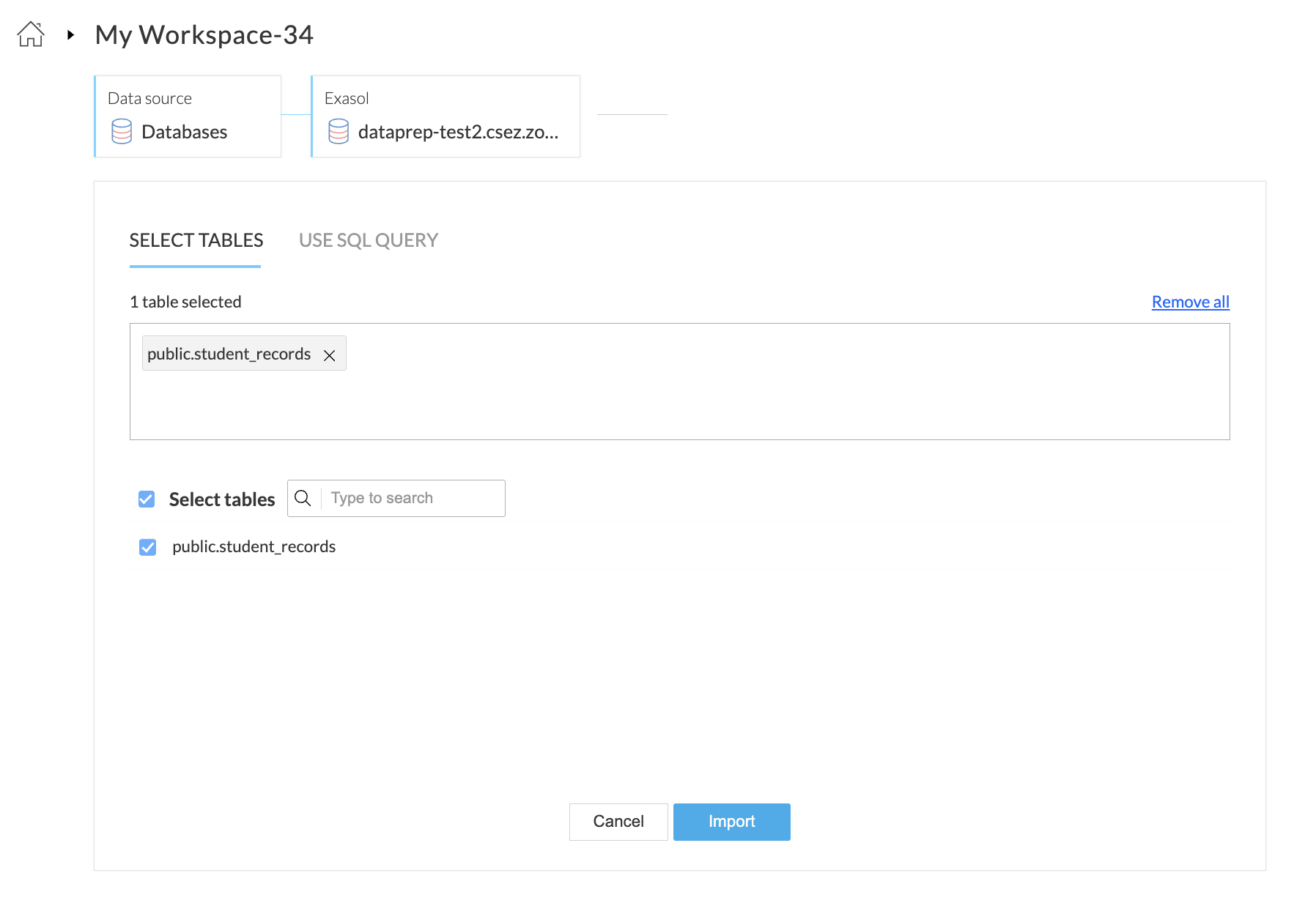 You can import data from the Exasol database into Zoho DataPrep using Zoho Databridge. Click here to know about Zoho Databridge.