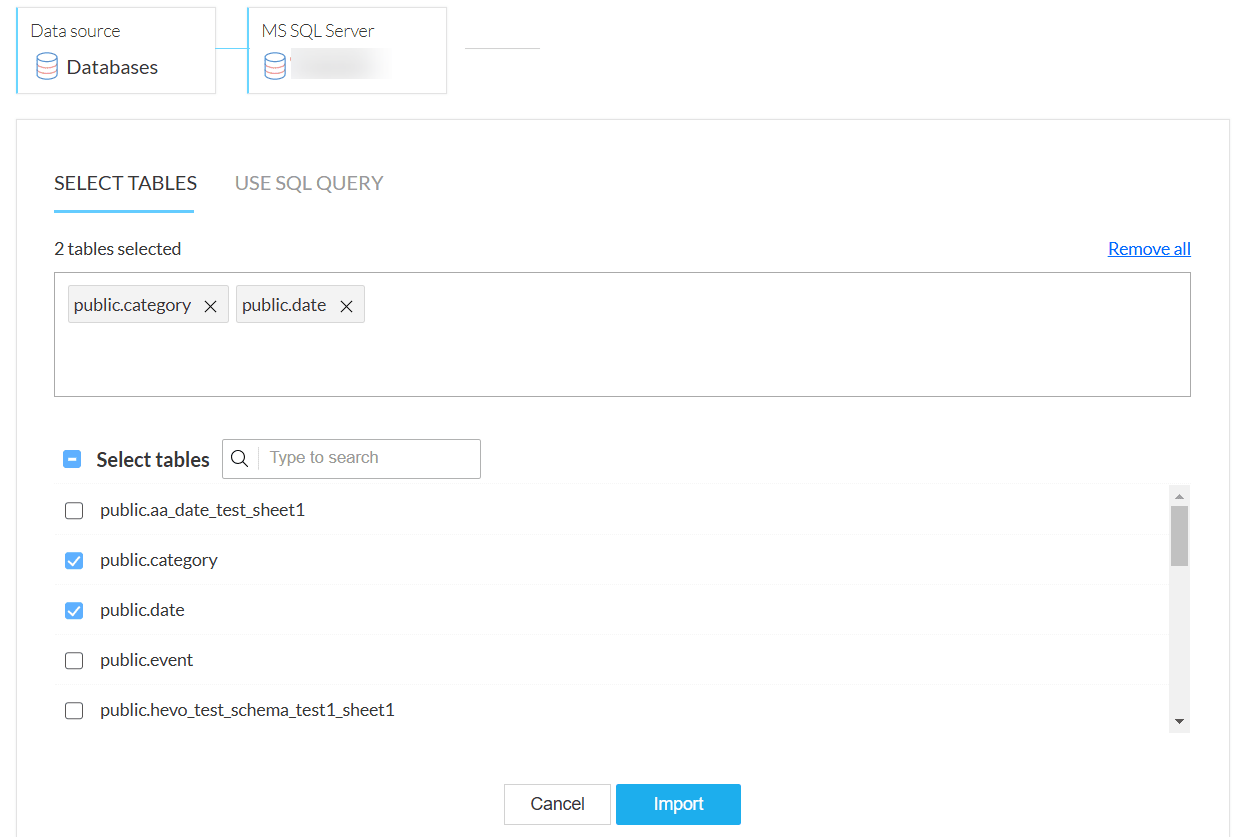 Note: The connection configuration will be automatically saved for importing from the database in the future. Credentials are securely encrypted and stored.