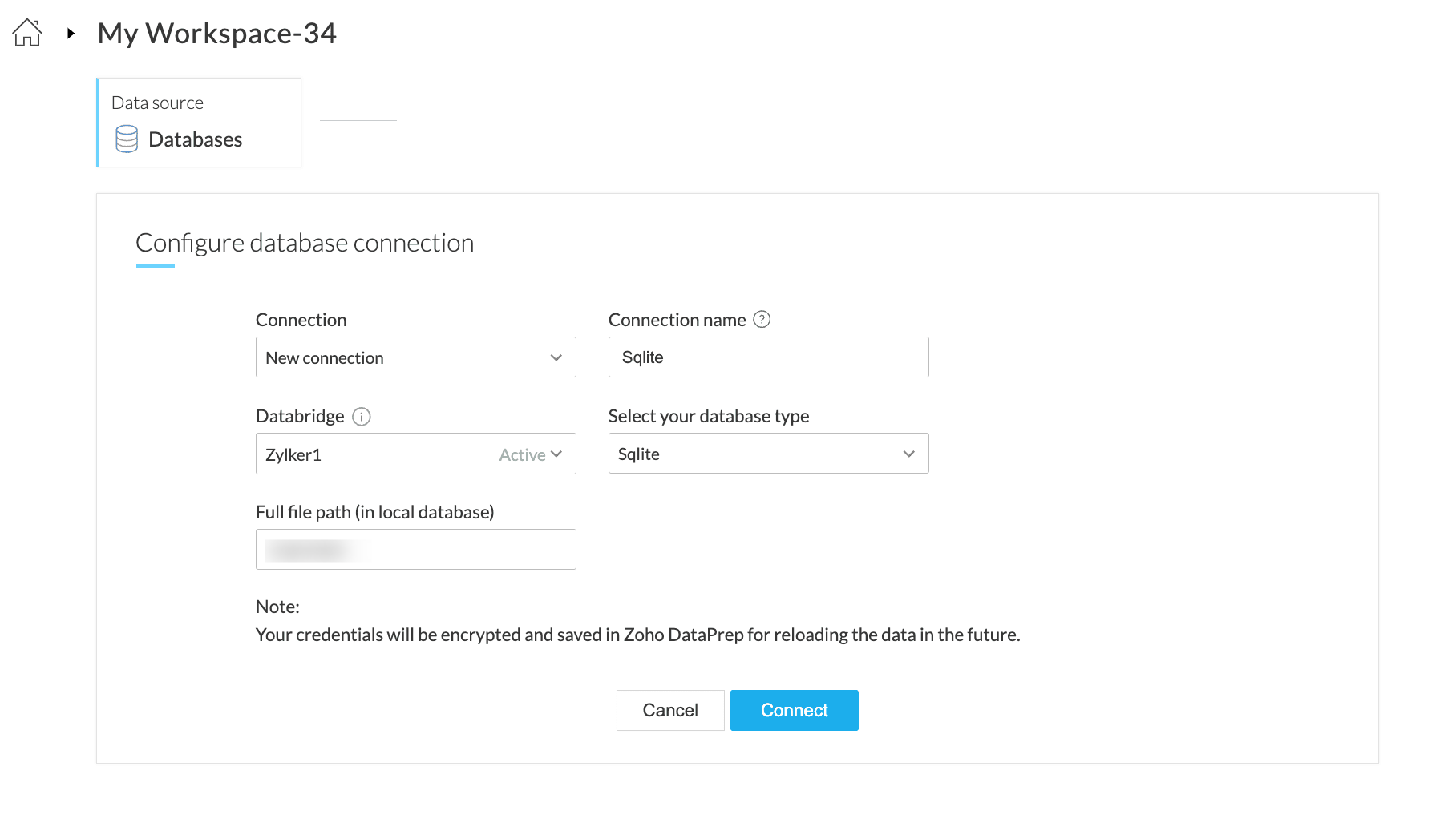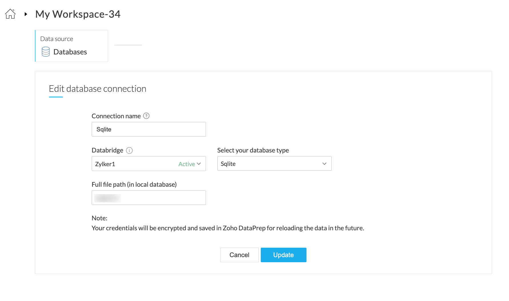 DataPrep saves your data connections to avoid the hassle of keying in the credentials every time you need to connect to a data source or destination. You can always edit the saved data connection and update them with new parameters or credentials using the Edit connection option.