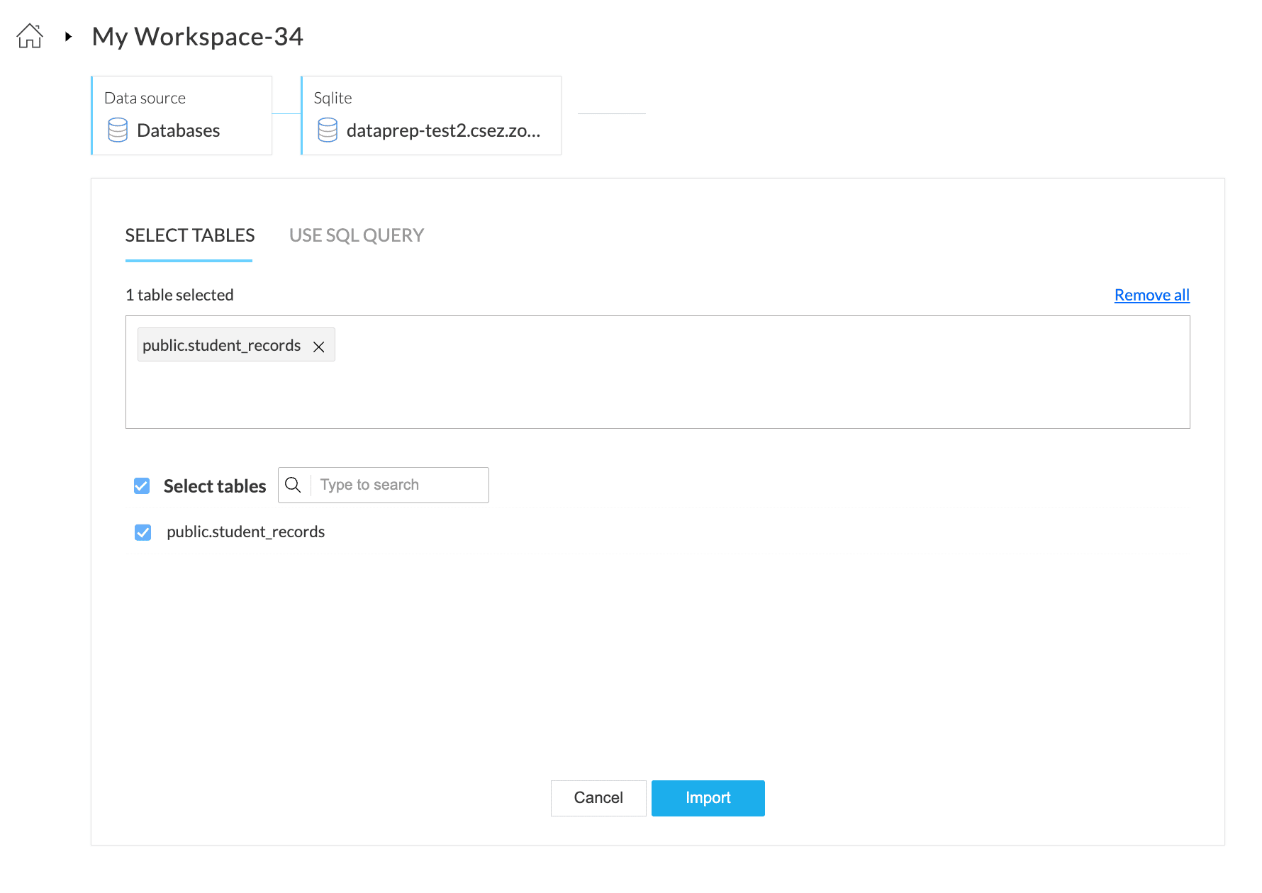 2. Ensure you have the correct login credentials for your database. As a best practice, try connecting to your target database from the Zoho DataPrep server, using the native database management software available for the respective database.