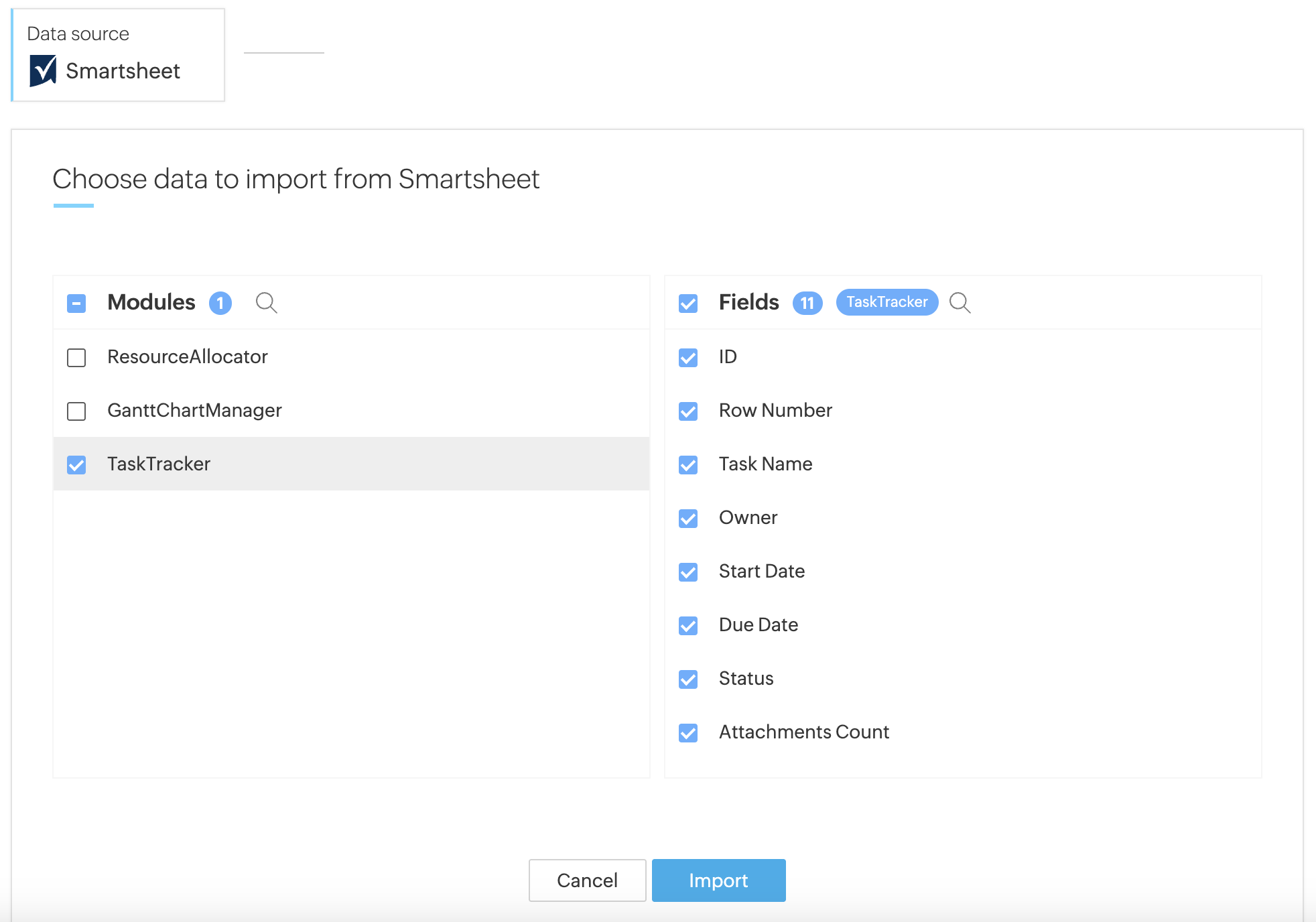 This option will import all available data from your Smartsheet project.