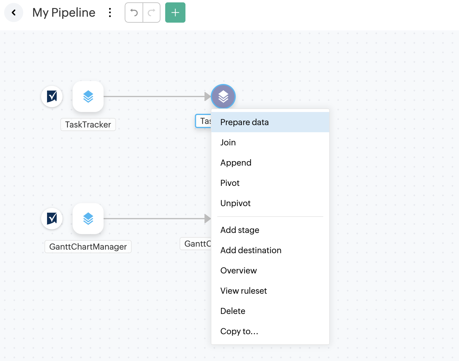1. Open an existing pipeline or create a pipeline from the Home Page, Pipelines tab or Workspaces tab and click the Add data option.