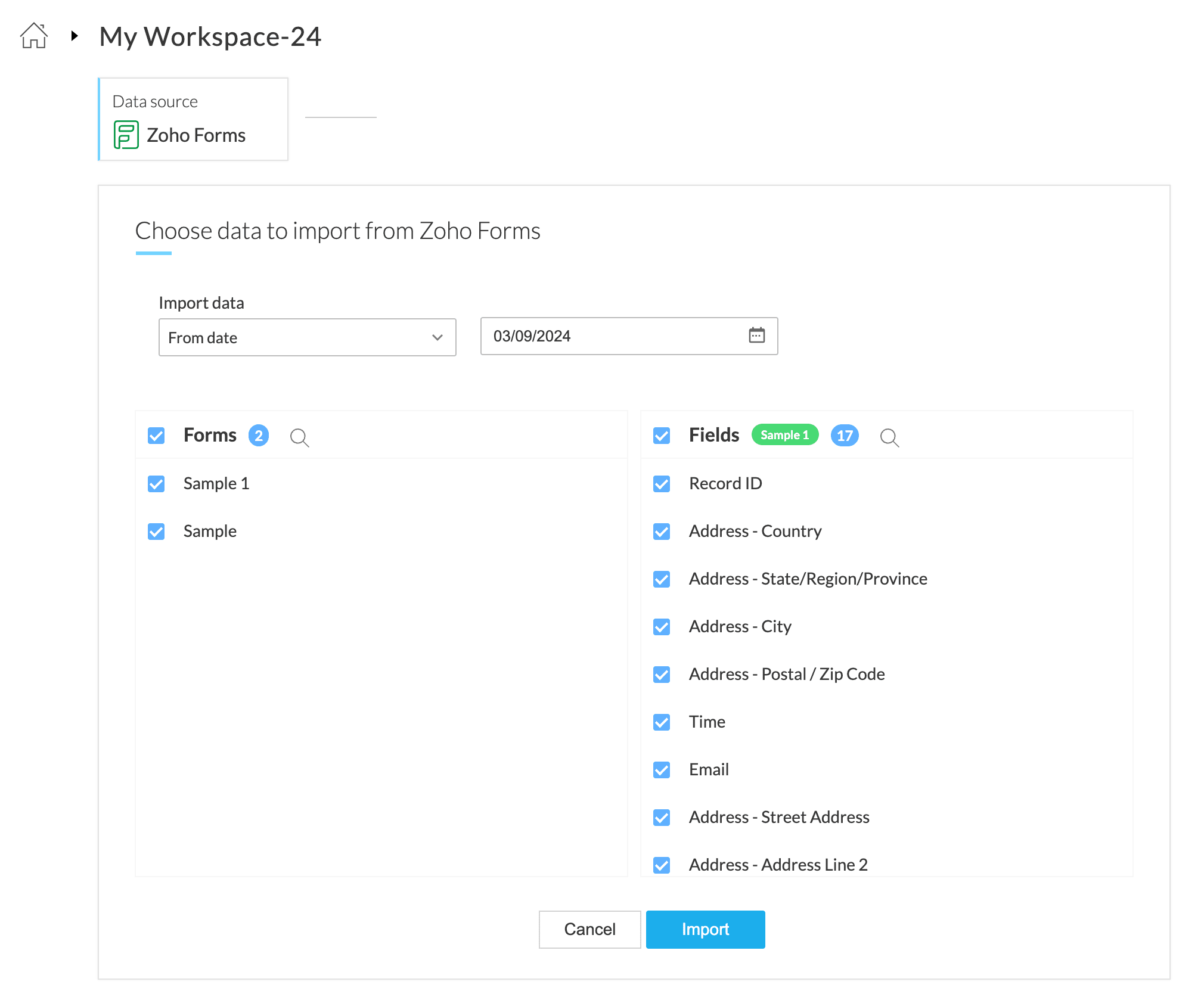Note: If you have already configured a schedule or any other run from Zoho Forms, data will be reloaded based on your earlier configuration under the Import configuration section when you click on the Edit schedule option and set a new schedule.