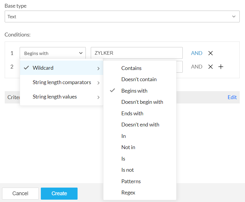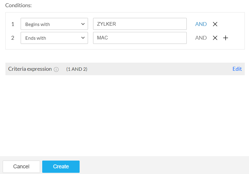 8. When adding multiple conditions, the logical operators, AND or OR appear next to the conditions. You can click to toggle the logical operator between AND and OR.